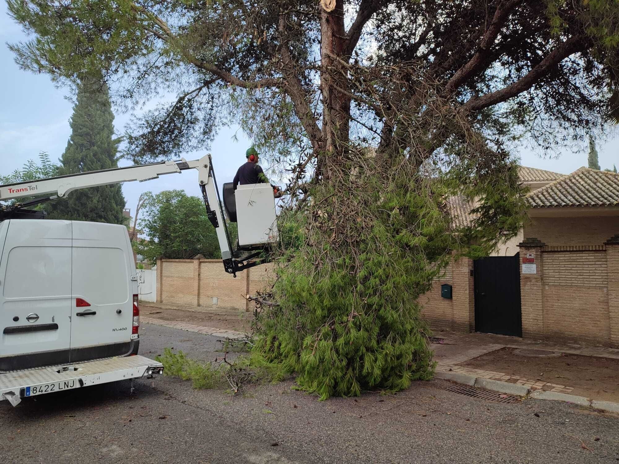 Además de cerrar al público parques y otras instalaciones municipales, tanto los operarios como los agentes de Policía Local estuvieron ayer señalizando los puntos de peligro y atendiendo las situaciones priorizando las urgencias. Entre estos puntos se encuentran la caída de árboles en la barriada Andalucía, urbanización Soto Alto, Marina Gelves, calle Acebuche y calle Jándula.