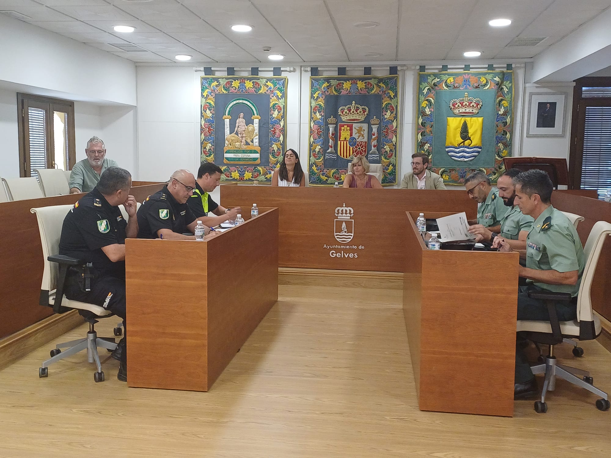 El Ayuntamiento de Gelves celebró la pasada semana, una Junta Local de Seguridad presidida por la alcaldesa Isabel Herrera y a la que asistieron el Concejal Delegado de Seguridad Ciudadana, el Jefe de la Policía Local de Gelves, el Subdelegado del Gobierno en la provincia de Sevilla, Francisco Toscano; el Sr. Coronel Jefe de la Comandancia de la Guardia Civil de Sevilla, el Capitán Jefe de la 3ª Compañía de la Guardia Civil de Sanlúcar la Mayor, el Sr. Comandante de Puesto Accidental de la Guardia Civil de San Juan de Aznalfarache, el Sr. Jefe Provincial de la Unidad de Policía Nacional adscrita a la Comunidad Autónoma Andaluza y un Oficial de Policía Nacional.