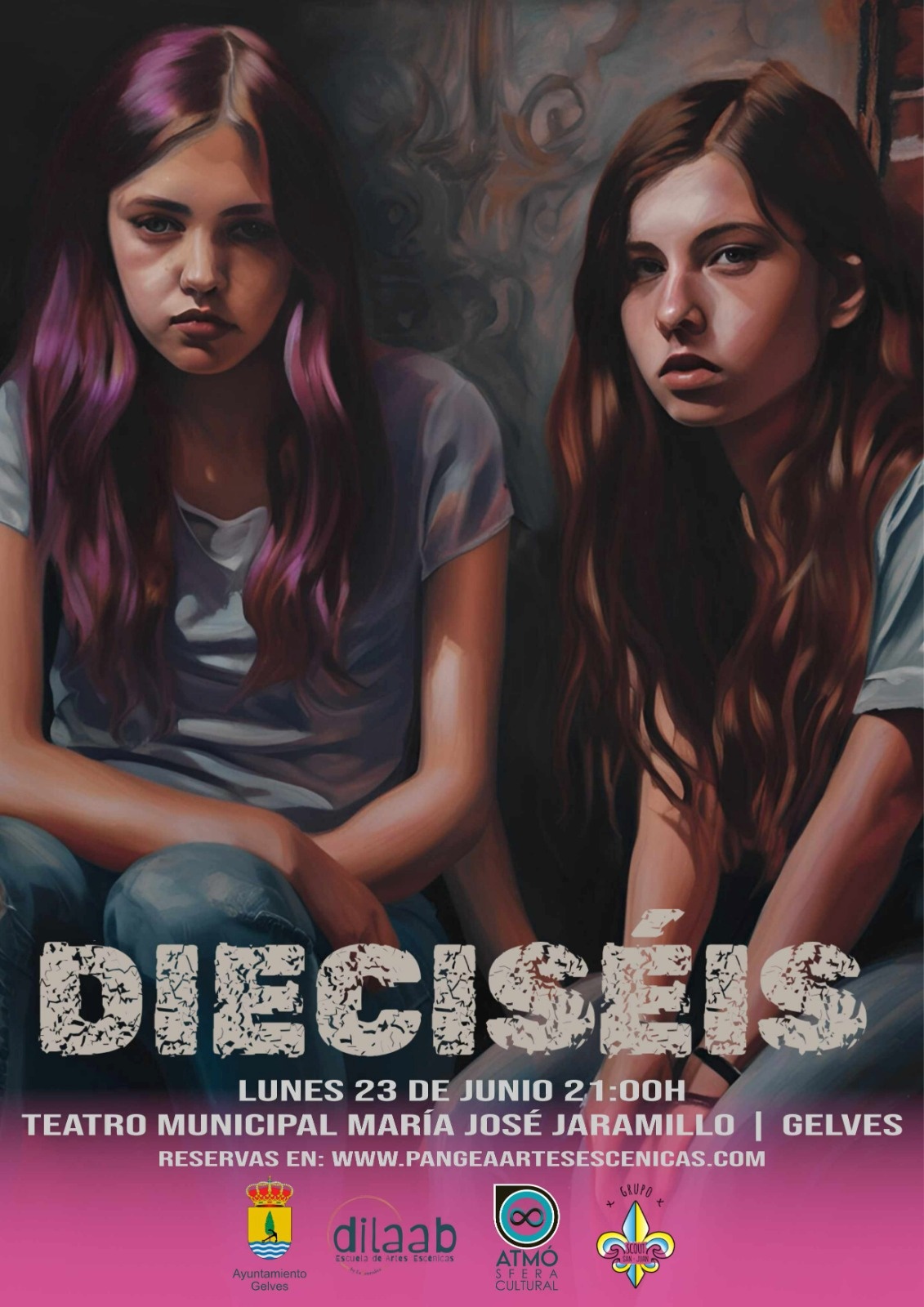 El Teatro Municipal "María José Jaramillo Ramírez" de Gelves será escenario esta tarde, lunes 23 de junio a las 21:00h, de la representación de la obra de teatro "Dieciséis", un emotivo y poético relato protagonizado por adolescentes que buscan dar voz a su generación en el camino hacia la construcción de su identidad.