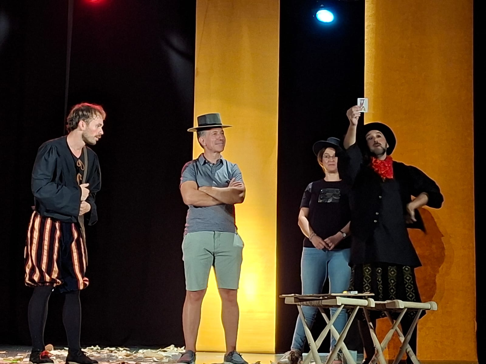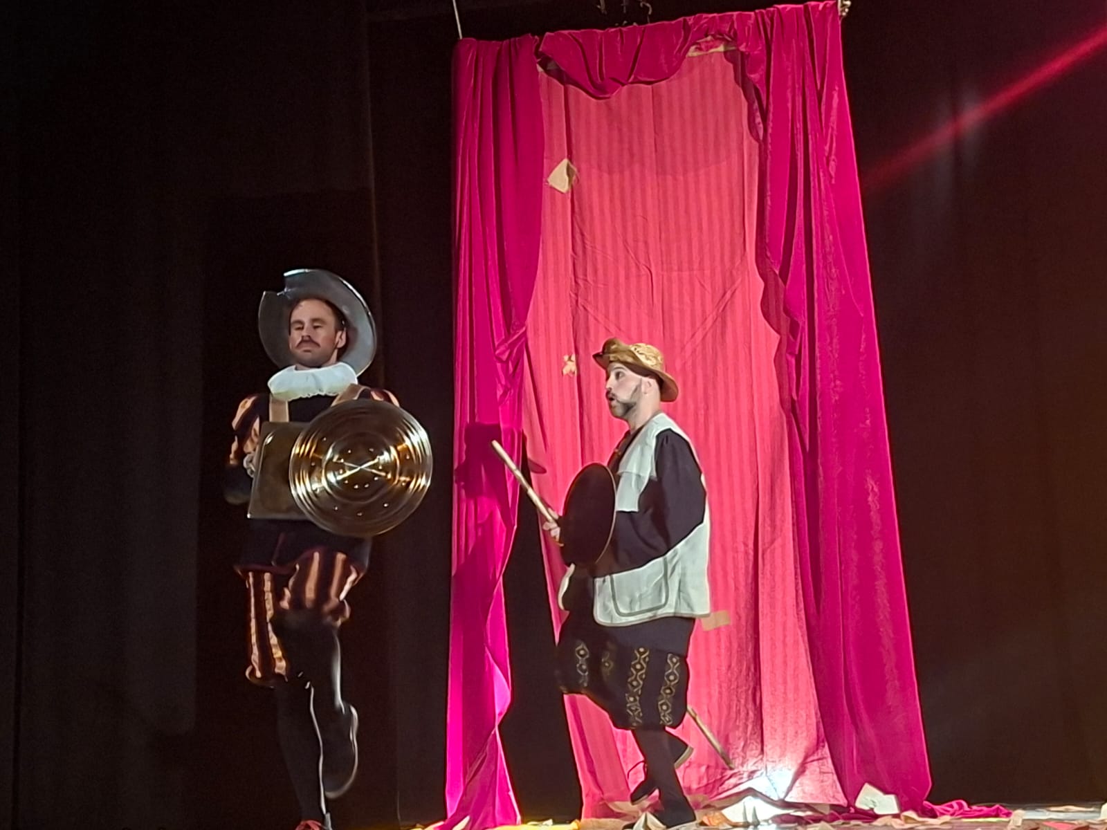 La primera representación, celebrada el sábado 27 de septiembre, fue la obra En un lugar de Cervantes, adaptación del clásico Retablo de las maravillas a cargo de Andolini Producciones, bajo la dirección de Sergio Rodríguez. El espectáculo resultó muy divertido y participativo, con un público entregado que premió con un largo aplauso final la originalidad de la propuesta. La obra ofreció un recorrido divulgativo por la vida y obra de Miguel de Cervantes, con personajes tan icónicos como Rinconete y Cortadillo, El Quijote y Sancho, o incluso el propio autor, destacando además la calidad del guion y la interpretación actoral.