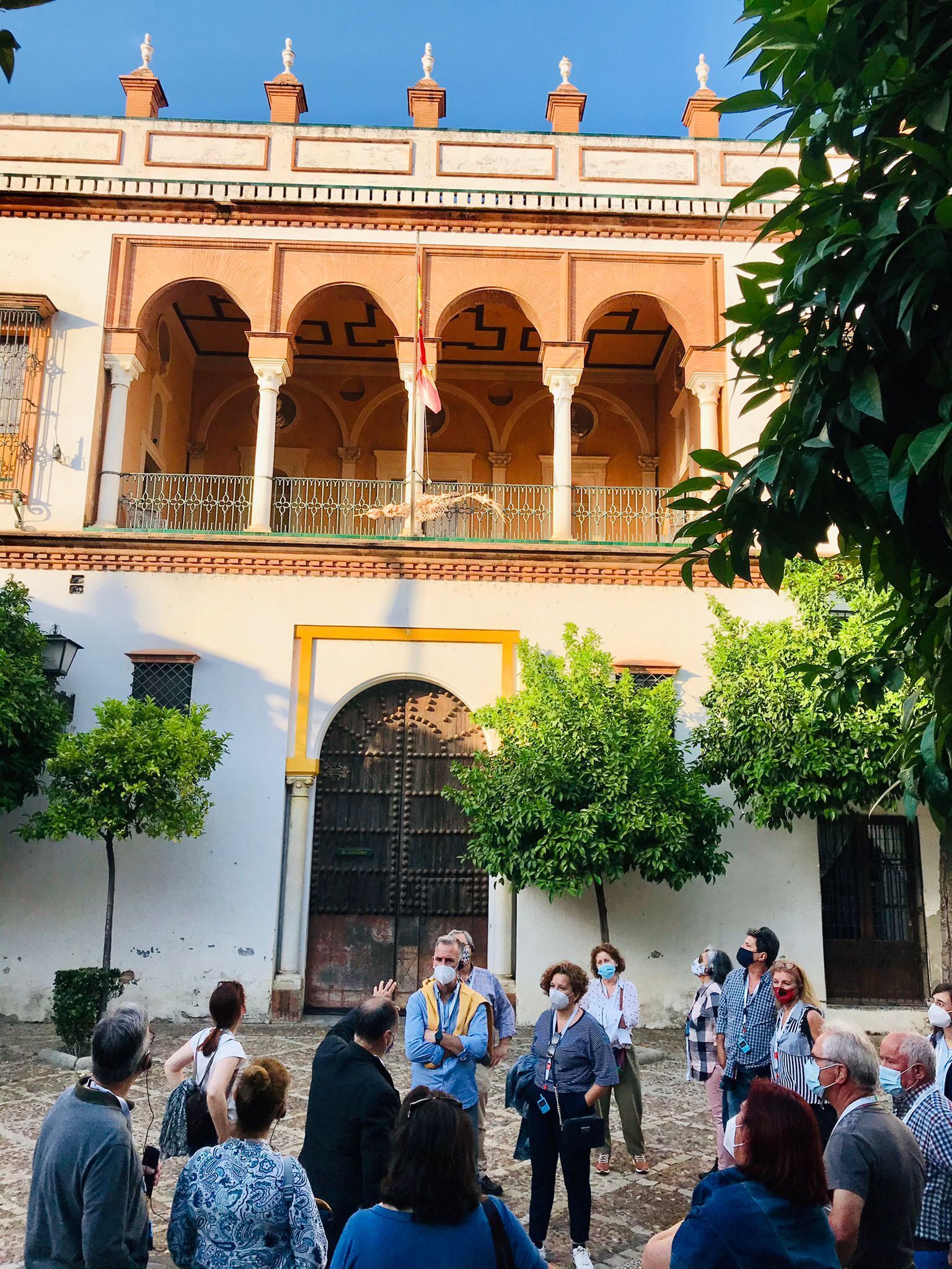 Una vez en Sevilla, la visita tuvo una duración aproximada de tres horas, y durante el recorrido sus 18 participantes, aforo reducido por las restricciones de la pandemia, pudieron conocer parte de los palacios y casas señoriales sevillanas desde el siglo XIV hasta la actualidad. Acompañado/as por un guía turístico experto, la visita se inició en el Palacio de San Telmo, para posteriormente conocer la Casa Guardiola y Palacio Yanduri. Después fueron a la Casa de la Provincia y al Palacio Arzobispal. A continuación pudieron disfrutar de enclaves tan interesantes como Casa Pinello, Casa Salinas y Casa Fabiola. Ya en la Judería vieron el Palacio de Altamira y el Palacio de Miguel Mañara, terminando en la Casa de Pilatos.