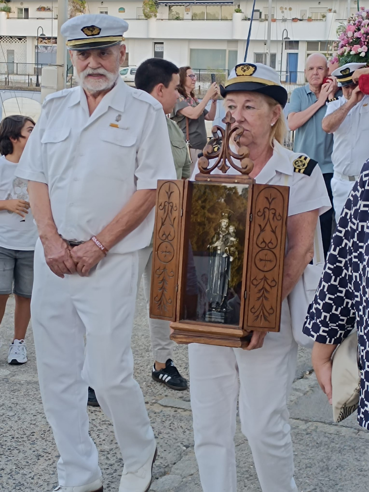 El delegado de Fiestas Mayores asistió a la procesión organizada por el grupo de personas devotas de la Virgen del Carmen, en colaboración con la Hermandad de Mareantes del Sur.