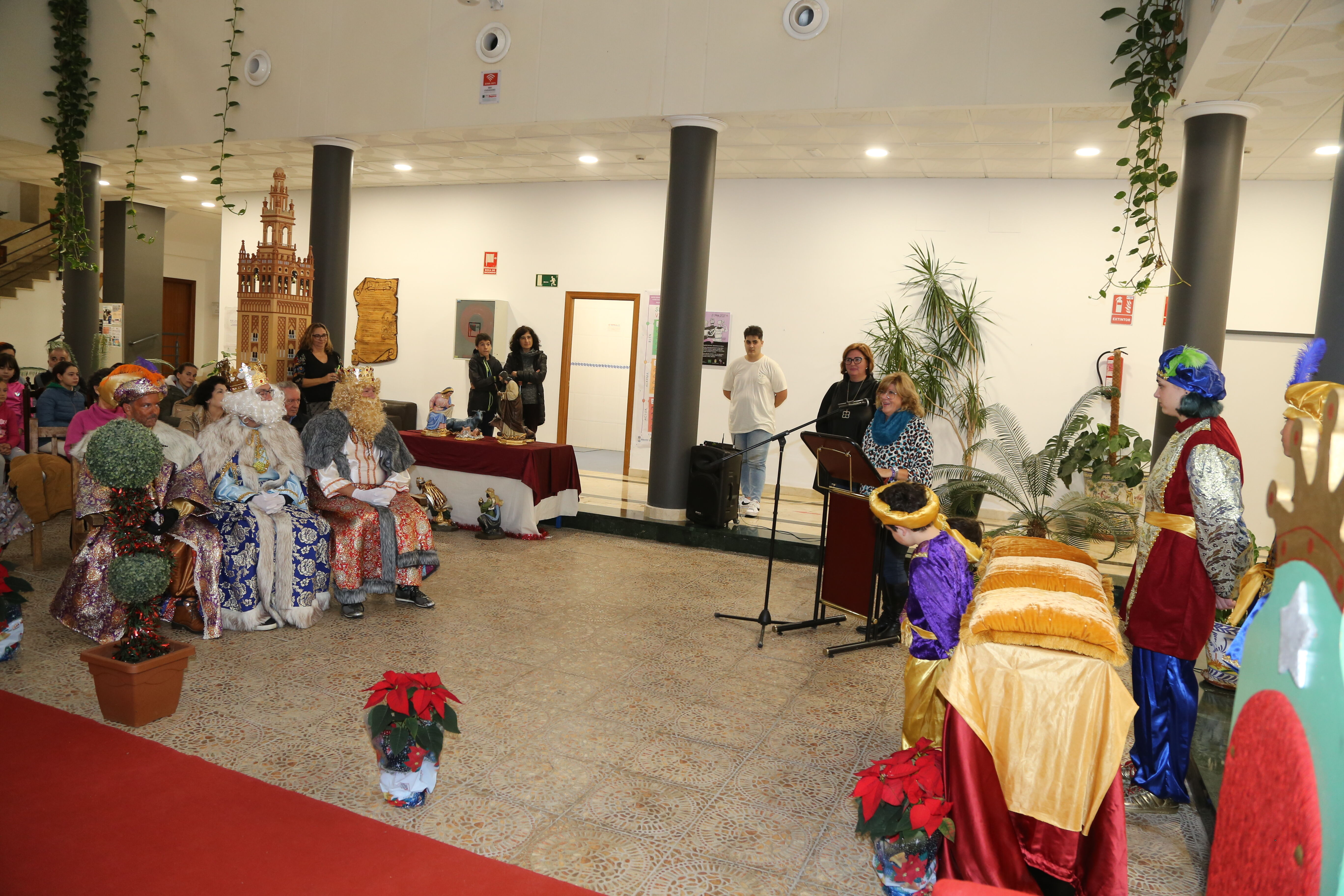 El patio central del Ayuntamiento acogió en la tarde de ayer el Acto de Coronación de los Reyes Magos de Oriente que, junto a las vestimentas recibidas el pasado 23 de noviembre, lucirán durante los actos organizados para la presente Navidad 2022-23. El acto contó con las intervenciones de la alcaldesa de Gelves, Isabel Herrera, encargada de colocar las coronas, y la presidenta del Ateneo de Gelves, Irene Bernal. Tras los discursos se sirvió una merienda Real a las personas asistentes.