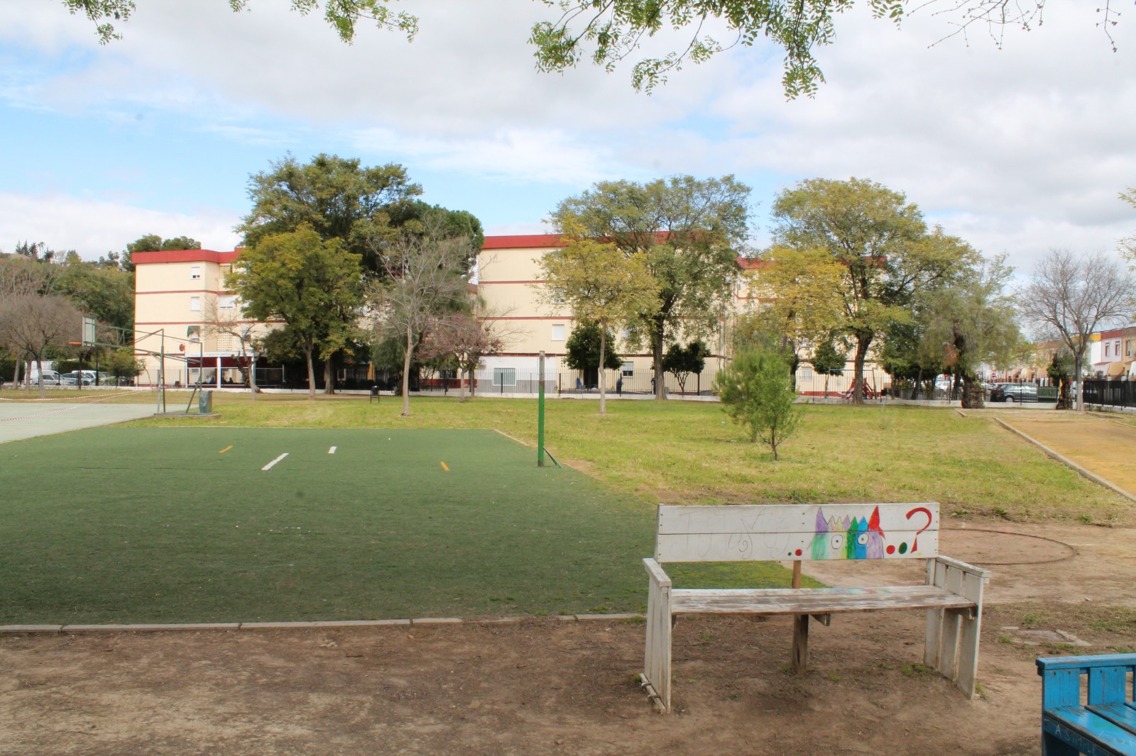 En la presente semana han concluido las labores de limpieza y desbroce en el patio de primaria del CEIP Duques de Alba, para realizarse en zonas como la calle de la barriada de Andalucía paralela a la travesía y el parque de la urbanización Marina Gelves.