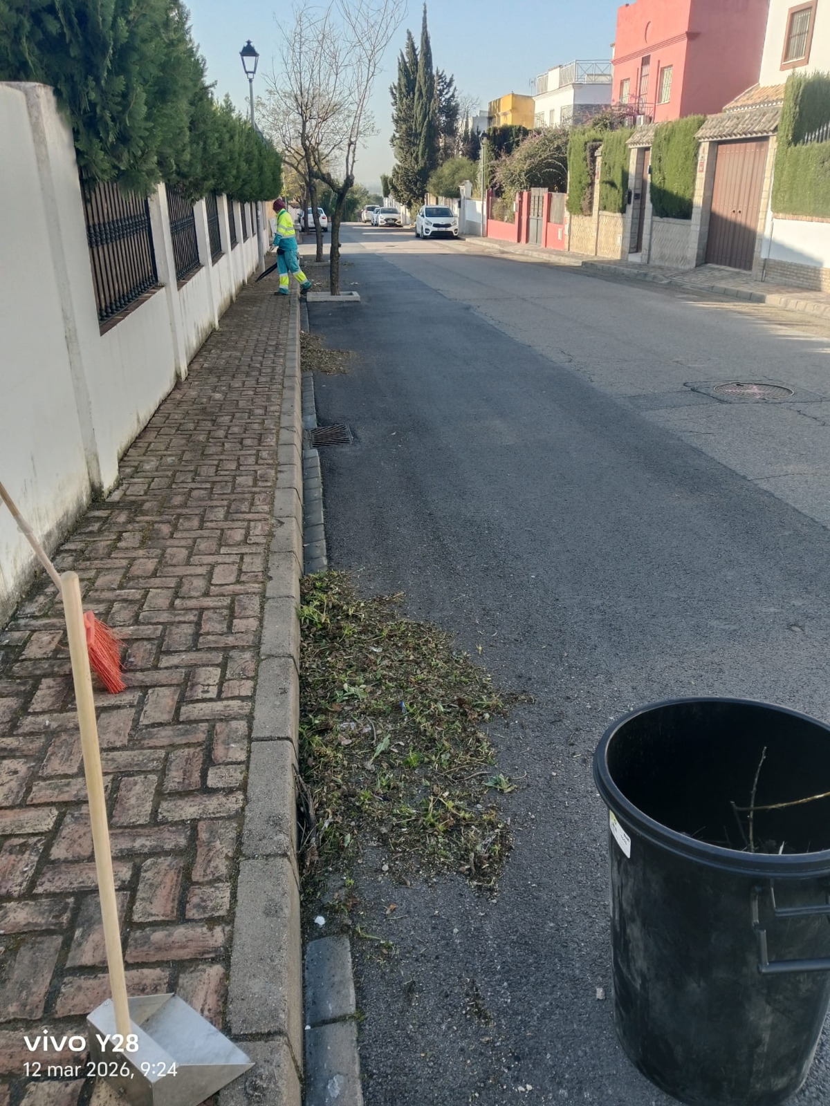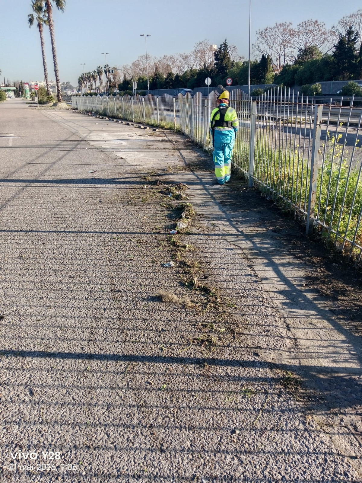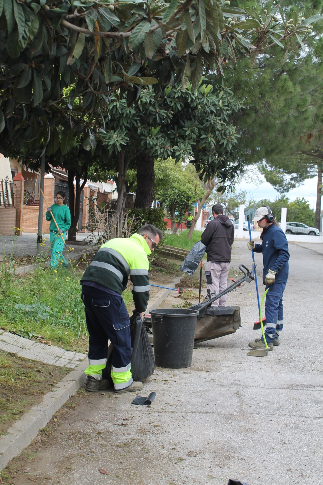 Por parte de la empresa contratada por el consistorio para la limpieza viaria también se siguen desbrozando aceras, alcorques y plazas, entre ellas las ubicadas en los edificios de viviendas en altura del sector 2 (zona del SAMU), la zona de aparcamientos del Aldi (Urbanización Hacienda Simón Verde) y algunas calles de Simón Verde (Viar, Fresneda y Guadalquivir).