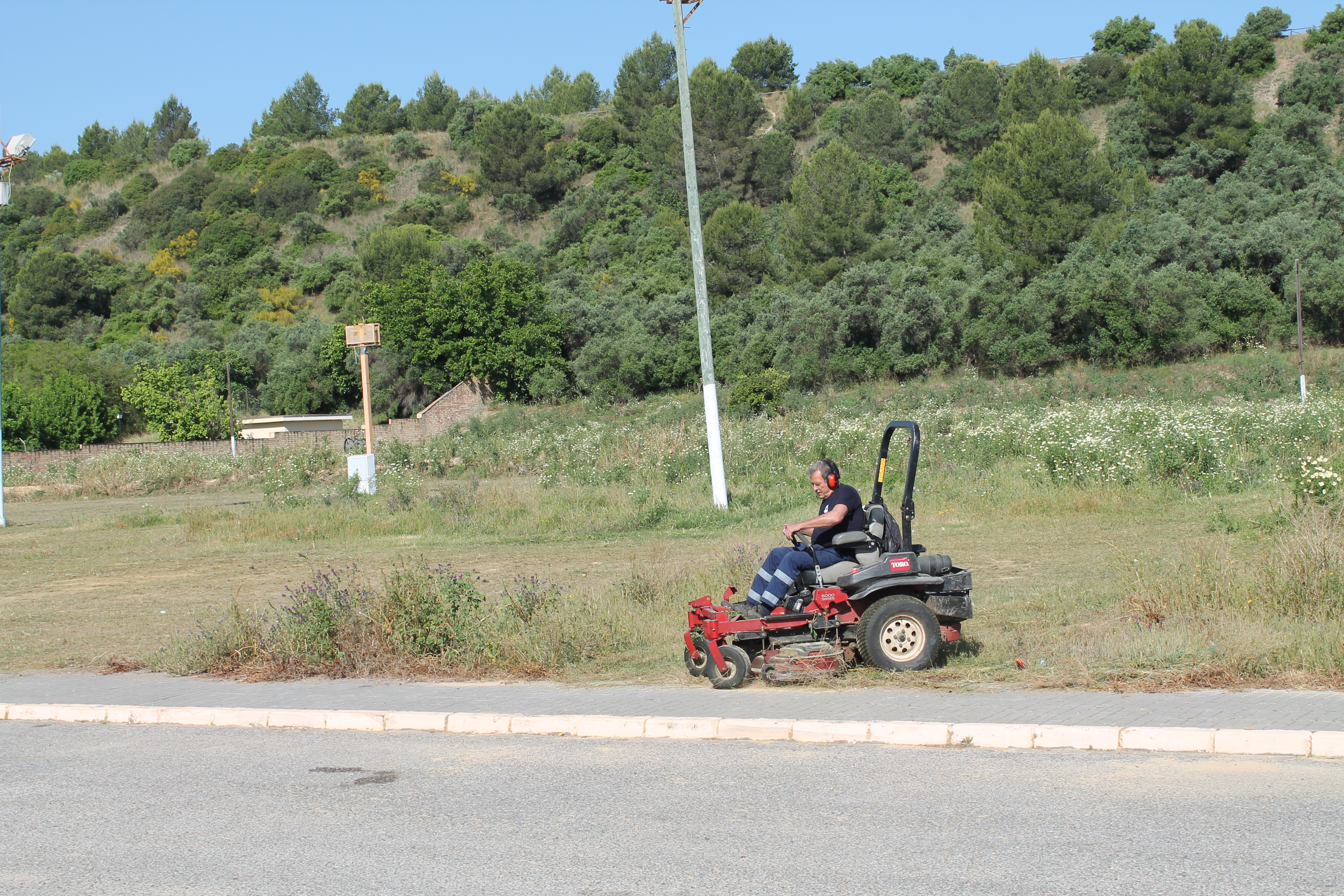 El Ayuntamiento continúa las labores de servicios priorizando el desbroce en estas fechas, además del riego en las últimas reposiciones de arboleda