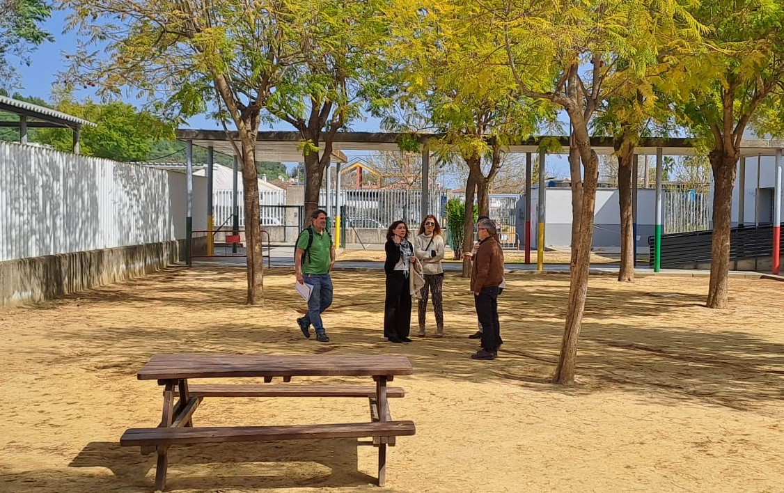 Los delegados de Urbanismo, Educación y Seguridad Ciudadana del Ayuntamiento de Gelves, Sandra Domínguez, David Mir y Rafael G. Villa respectivamente, acompañados por el arquitecto técnico Municipal, Santiago Pérez, han visitado recientemente el CEIP Duques de Alba para conocer in situ sus necesidades.