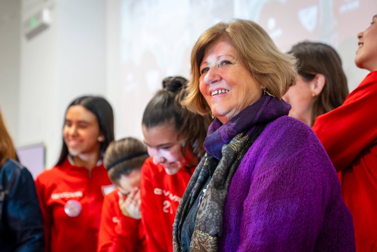 A continuación, tuvieron lugar los reconocimientos, en esta ocasión dedicados a Francisca Caraballo Monge (Presidenta de la Asociación de Mujeres Fibrogelduba) y al Club Deportivo Gelves. En el caso de Francisca recogió su reconocimiento debido a su trayectoria como mujer, involucrada en el ámbito social, escritora y entregada al sector asociativo. Con respecto al Club Deportivo Gelves, se le reconoció como el único club que había puesto en marcha el proyecto promovido por la Delegación de Igualdad titulado "Charlas de Vestuario". Un proyecto que se encargaba de integrarse dentro del propio club y sus equipos para contagiar un ambiente igualitario y respetuoso. Además se hizo un recorrido por la historia del club en su apuesta por la presencia femenina en sus equipos. Asistió una representación de estos equipos, encargada de recoger la conmemoración y acompañada de otros miemrbos de la directiva actual.