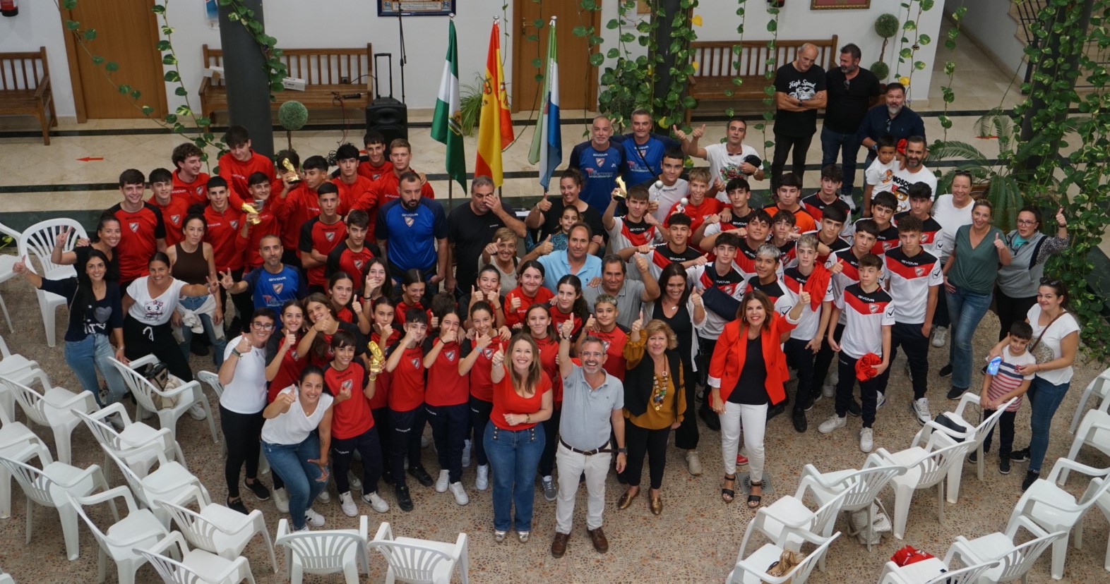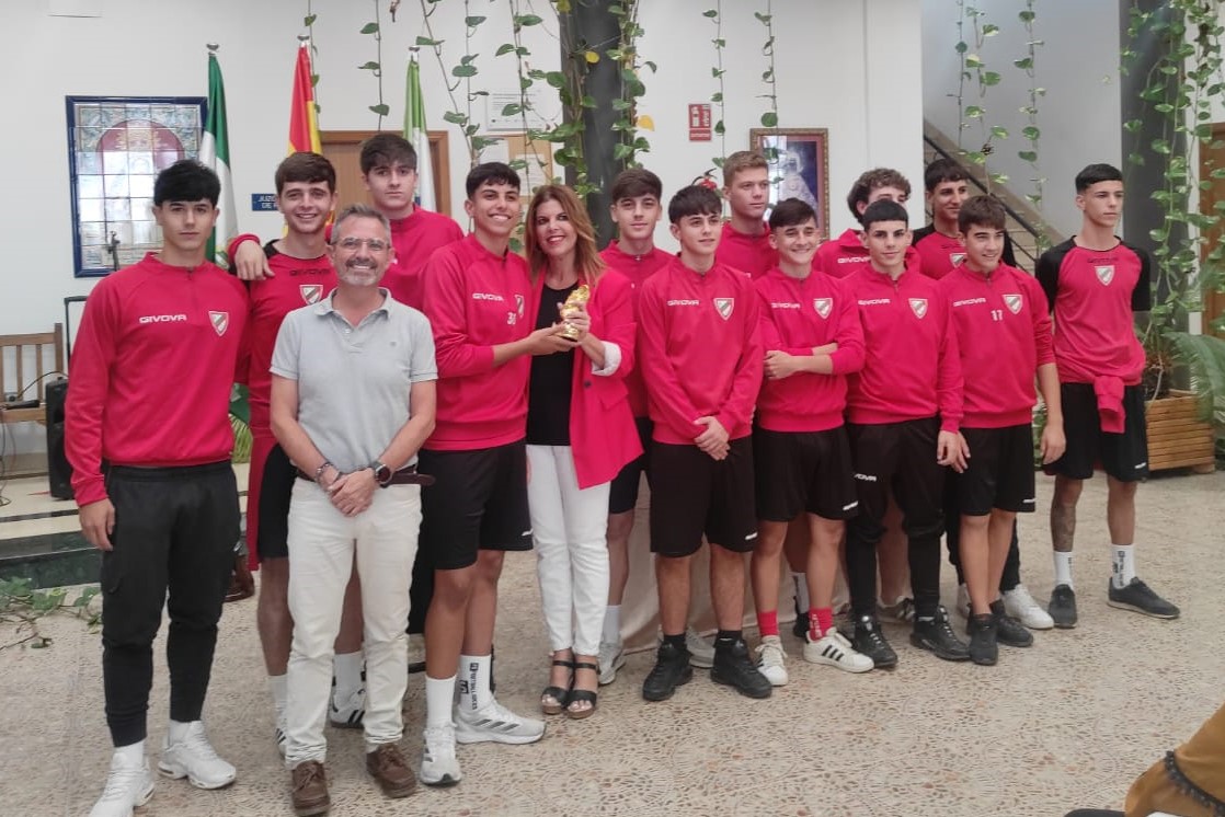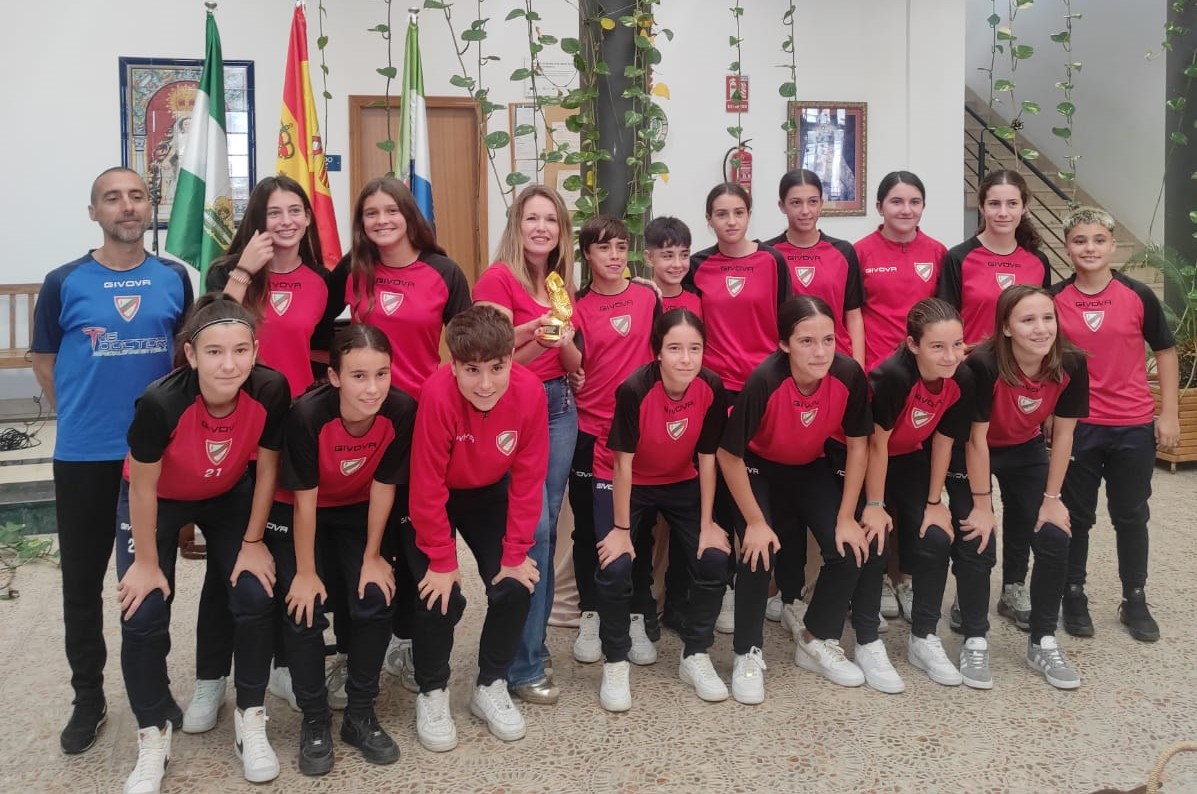 En el evento, la alcaldesa, Isabel Herrera, estuvo acompañada por el Delegado de Deportes, David Mir; la Delegada de Igualdad y Diversidad, Mariló González; y la Delegada de Turismo, Isabel García. Herrera, tras hacer entrega al equipo cadete femenino destacó la importancia de la igualdad en el deporte “rey”, además de mostrar su alegría por recibir en la sede del Ayuntamiento a los/as deportistas. También defendió la alcaldesa la importancia de visibilizar, con estos actos, el esfuerzo, el trabajo, y la dedicación de los/as jugadores/as, sus entrenadores/as, sus familiares y la Junta Directiva del C.D. Gelves.