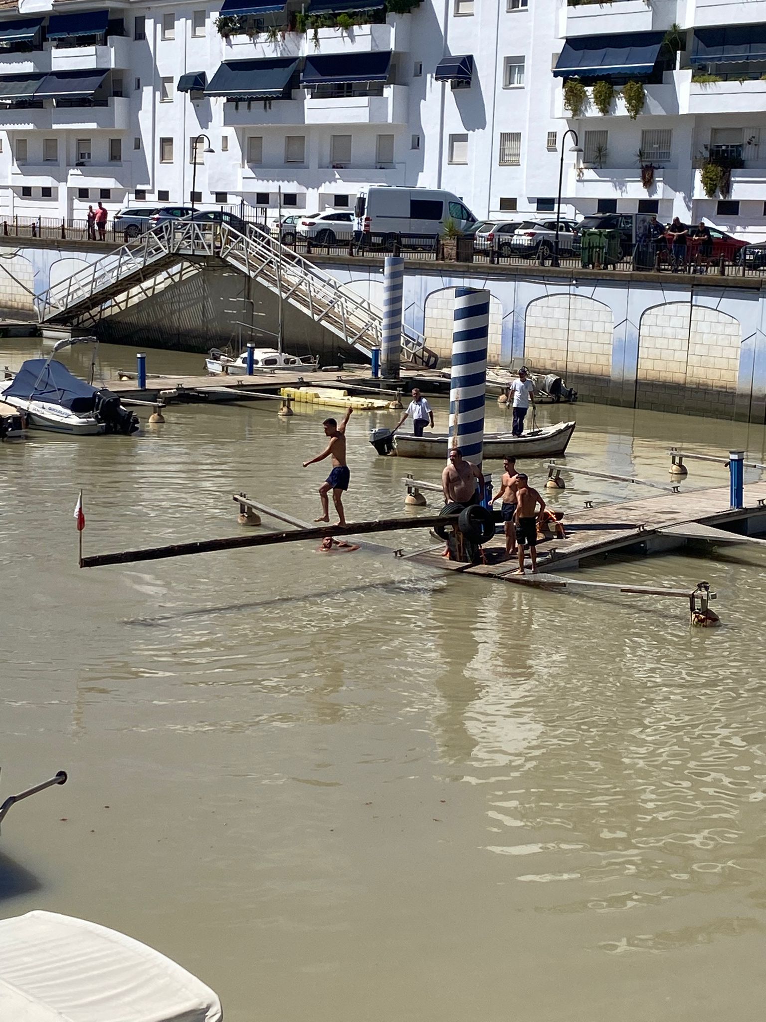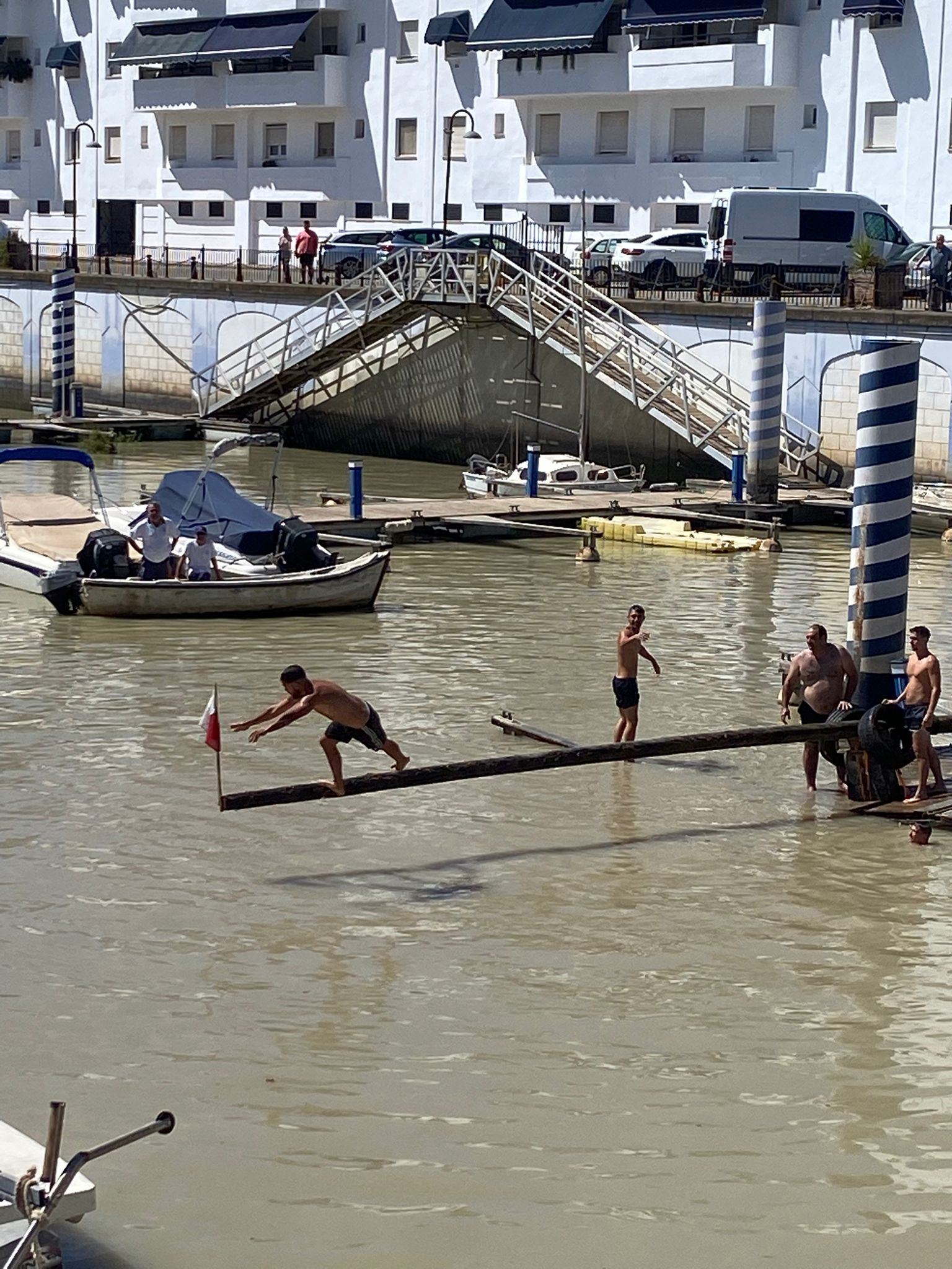 Fiel a la tradición Puerto Gelves ha acogido un año más la cucaña