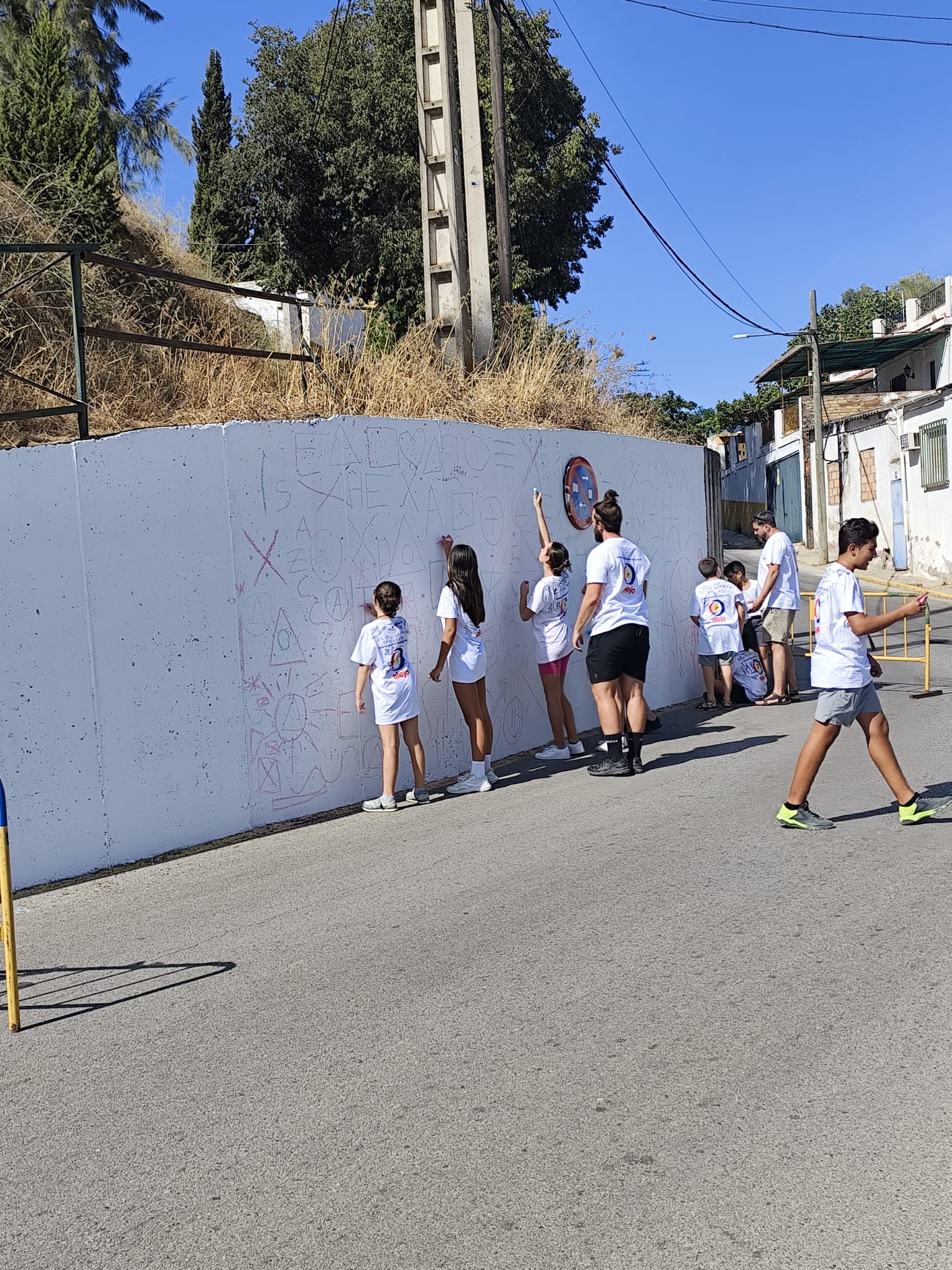 En esta fase final han hecho realidad su boceto sobre uno de los muros que conecta el municipio con la zona alta de Gelves ( Simon Verde) a la altura entre la Parroquia y el Cementerio Municipal, con la idea principal de llenar de color, simbología y embellecer esta zona.