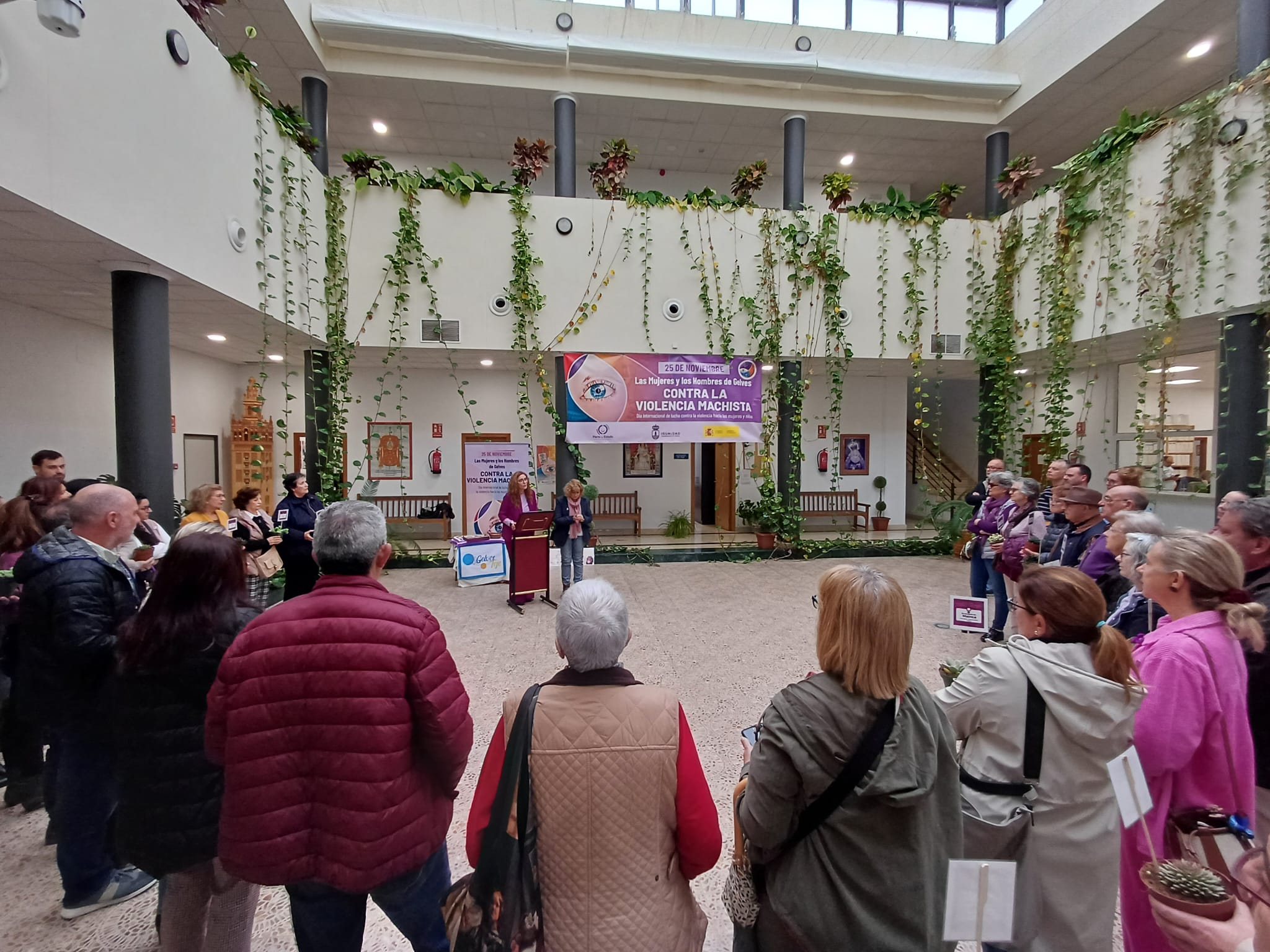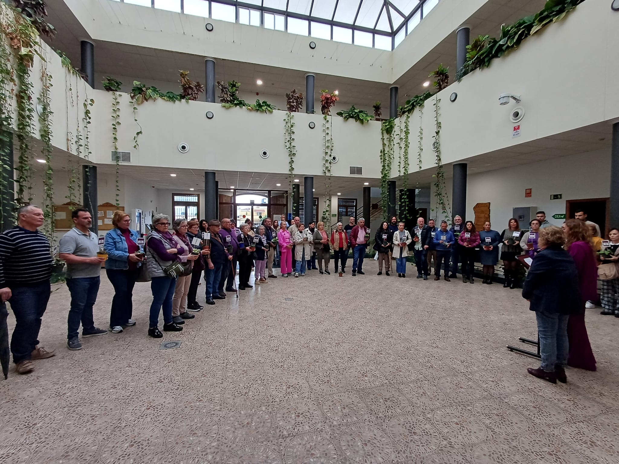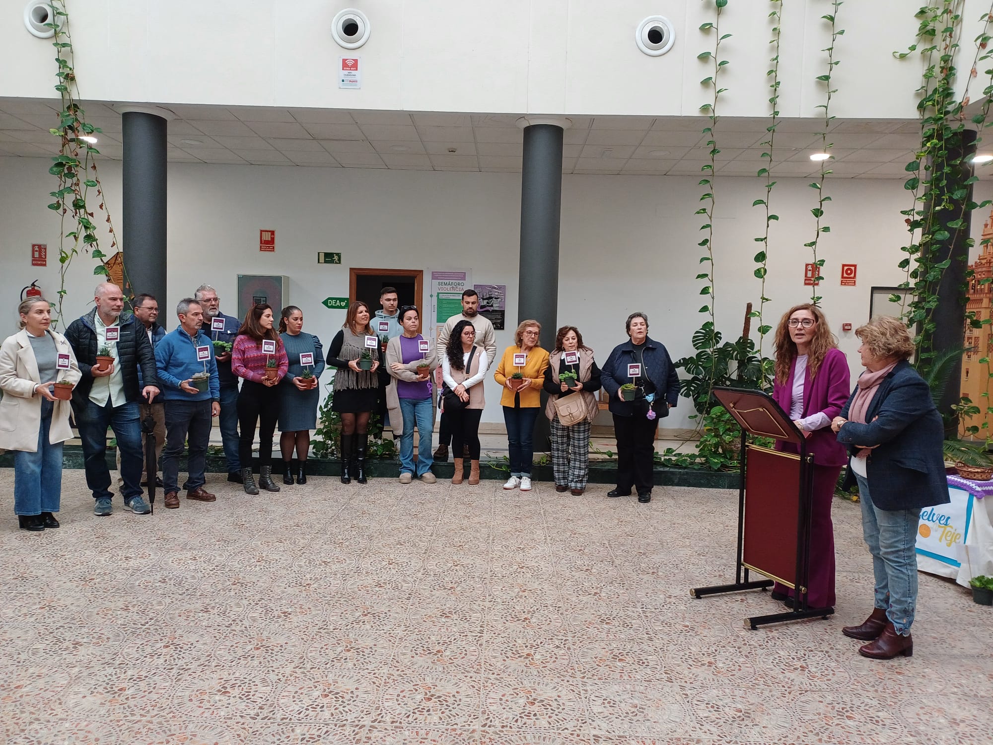 El mal tiempo atmosférico ha impedido poder desarrollar como estaba previsto la actividad “Sembrando Esperanzas, la raíz de vuestro recuerdo”, en la que representantes de entidades locales presentes y personas asistentes, iban a sembrar plantas facilitadas por la organización en parterres situados en la fachada principal del Ayuntamiento. La intención, recordar a las 42 mujeres asesinadas por violencia de género en España en lo que va de año. En su lugar, las personas asistentes, a título personal o en nombre de una entidad local, han participado en una foto de familia sosteniendo las plantas asignadas, mostrando así su apoyo a la causa. En los próximos días, personal del servicio municipal de jardinería procederá a su siembra en el lugar previsto.