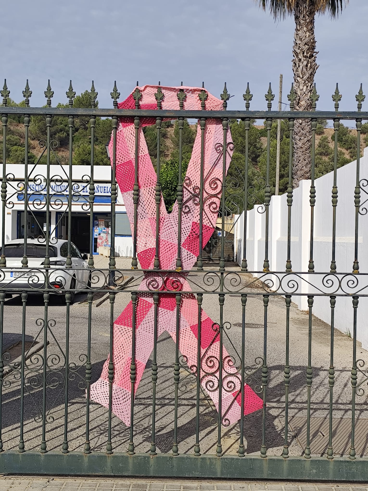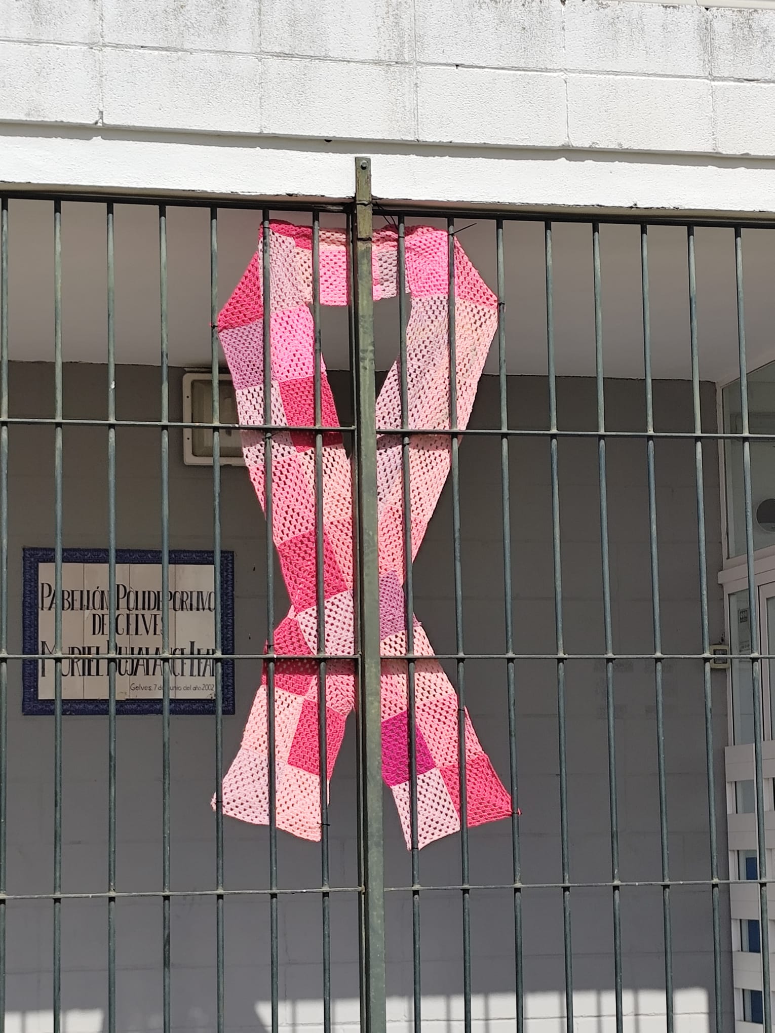 Desde primera hora de la mañana, numerosos lazos rosas elaborados a mano por las Tejedoras del proyecto municipal Gelves Teje decoran distintos edificios municipales, recordando a toda la ciudadanía el valor de la unión y el compromiso colectivo. El lazo rosa, símbolo internacional de esta causa, representa la esperanza y la fuerza compartida en la lucha contra el cáncer de mama.