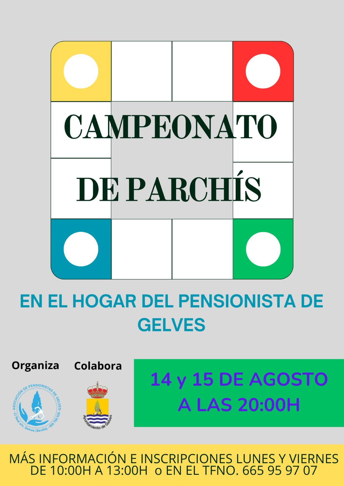 La Asociación de Pensionistas de Gelves, en colaboración con el Ayuntamiento de Gelves, ha organizado varias actividades nuevas que se sumarán al programa oficial de la Feria y Fiestas Patronales de Gelves 2024 que está confeccionando el Consistorio. Entre las novedades se encuentran dos concursos: uno de Sevillanas y otro de Tortilla Española; además de un Campeonato de Parchís. Todas las actividades, dirigidas al público en general, se celebrarán en el Hogar del Pensionista, ubicado en la calle Real, s/n, de nuestra localidad en días previos a la Feria.