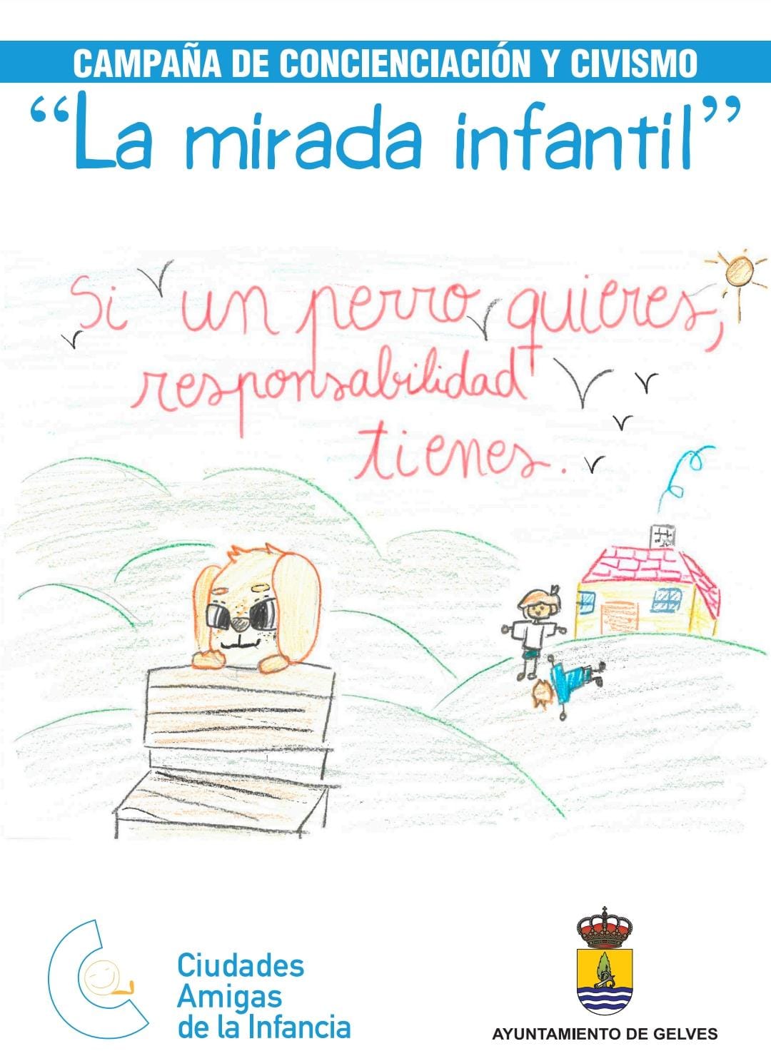 El Ayuntamiento de Gelves ha iniciado una nueva campaña de concienciación titulada "La Mirara Infantil" para sensibilizar a sus vecinas y vecinos de la necesidad de ser cívicos para garantizar el respeto por el medioambiente y los espacios comunes. Para ello ha recogido una iniciativa del Consejo de la Infancia Municipal de Gelves, cuyos integrantes diseñaron una serie de carteles en este sentido, que han empezado a colocarse hoy mismo por distintos puntos claves del municipio.