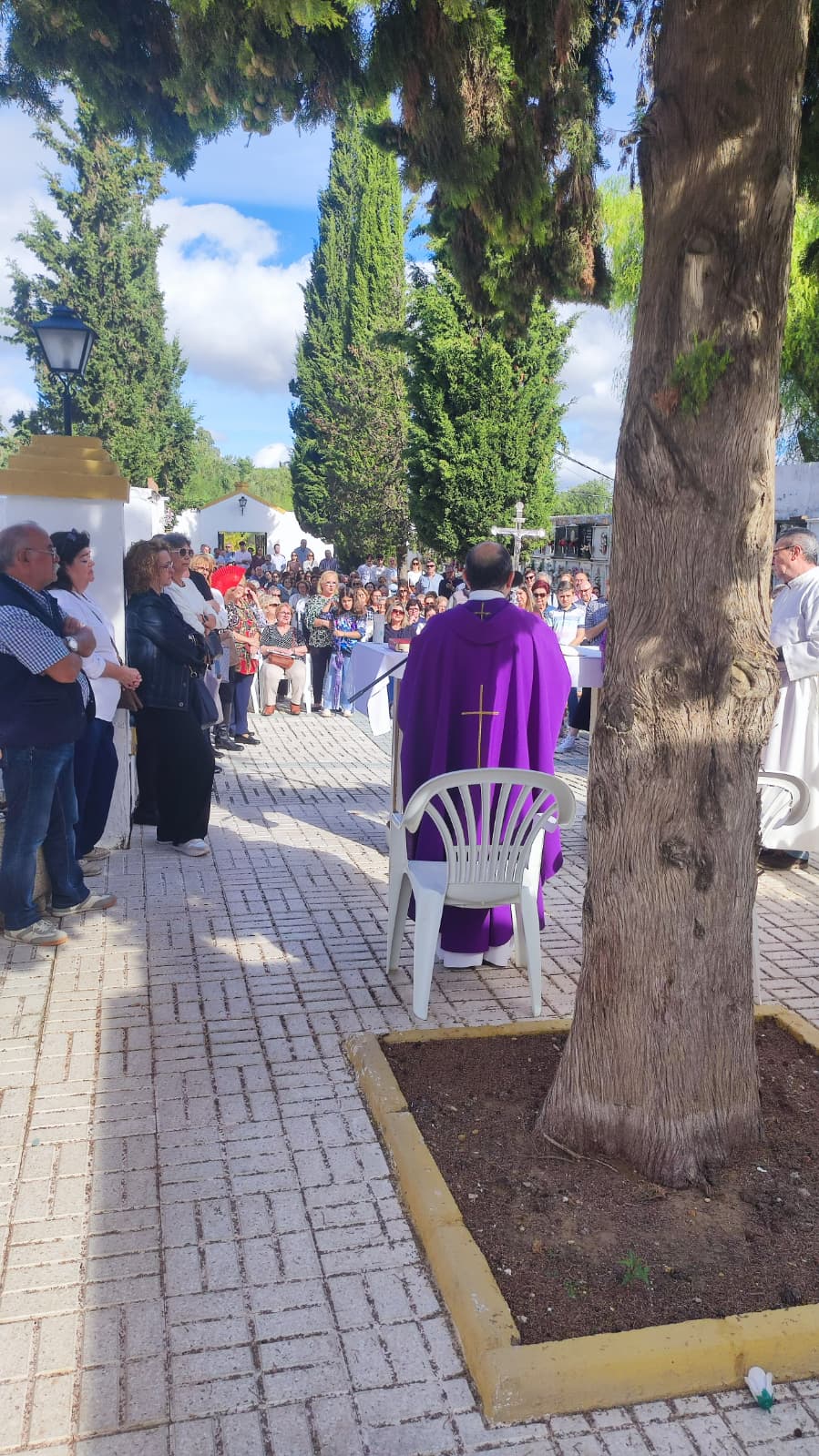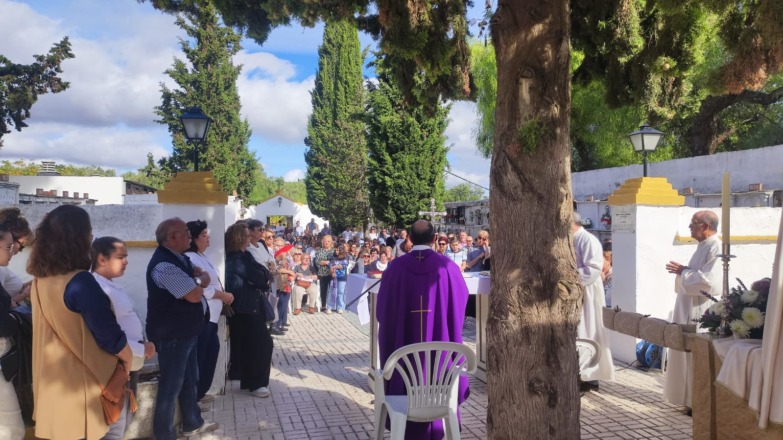 Como cada año, el Consistorio facilitó el traslado y la asistencia al Cementerio Municipal con un servicio especial de microbús, además de aportar medios técnicos y mobiliario para la celebración organizada por la Parroquia.