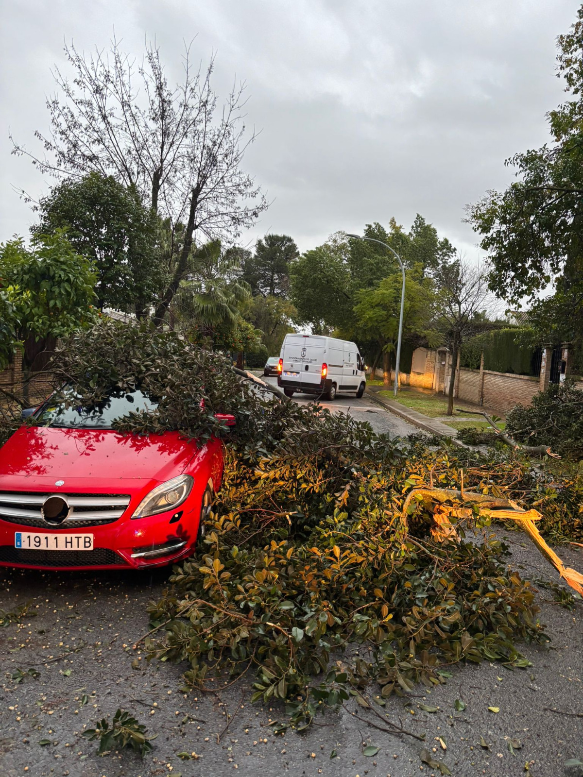 Los fortísimos vientos de la borrasca Leonardo causan más daños que anteriores temporales en Gelves