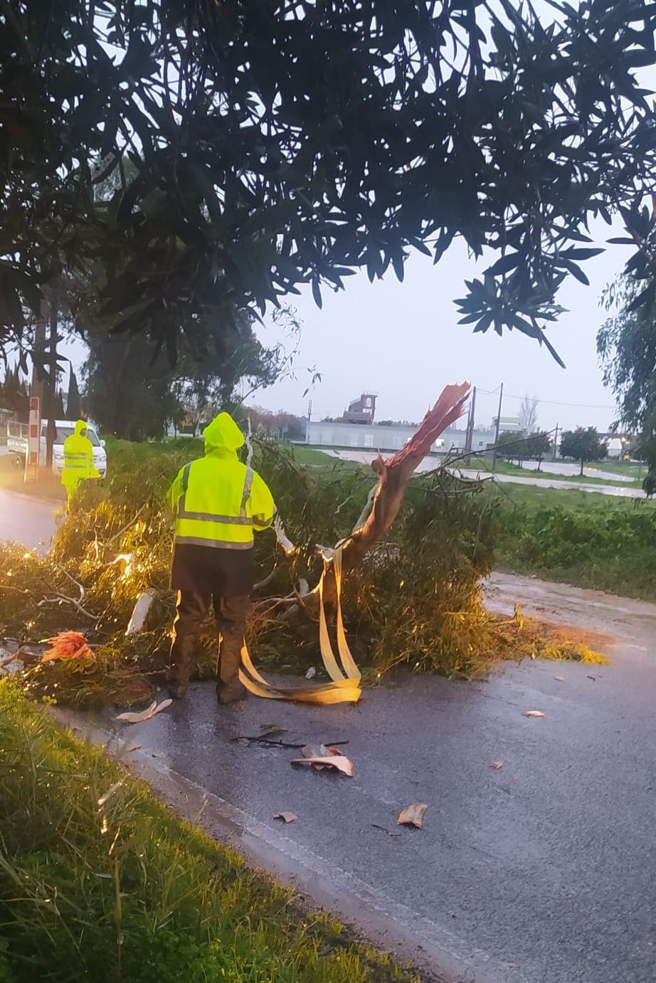 El Ayuntamiento de Gelves informa a la ciudadanía de que la borrasca Leonardo ha causado más daños durante la jornada de ayer en la localidad que los temporales anteriores. Las fortísimas rachas de viento de hasta 84 Km/h según la AEMET registradas a primera hora provocaron numerosas incidencias, principalmente la caída de ramas y árboles, así como destrozos en instalaciones municipales y algunos domicilios particulares.