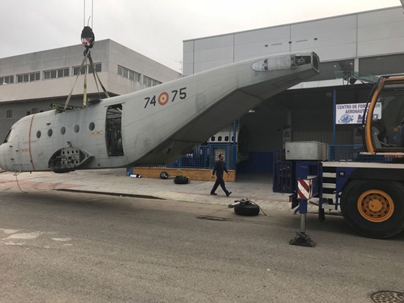 El avión junto con dos motores y dos hélices serán utilizados para fines didácticos en el Centro de Formación Aeronáutica M&D Aeroespacial Tools, SL ubicado en Gelves.