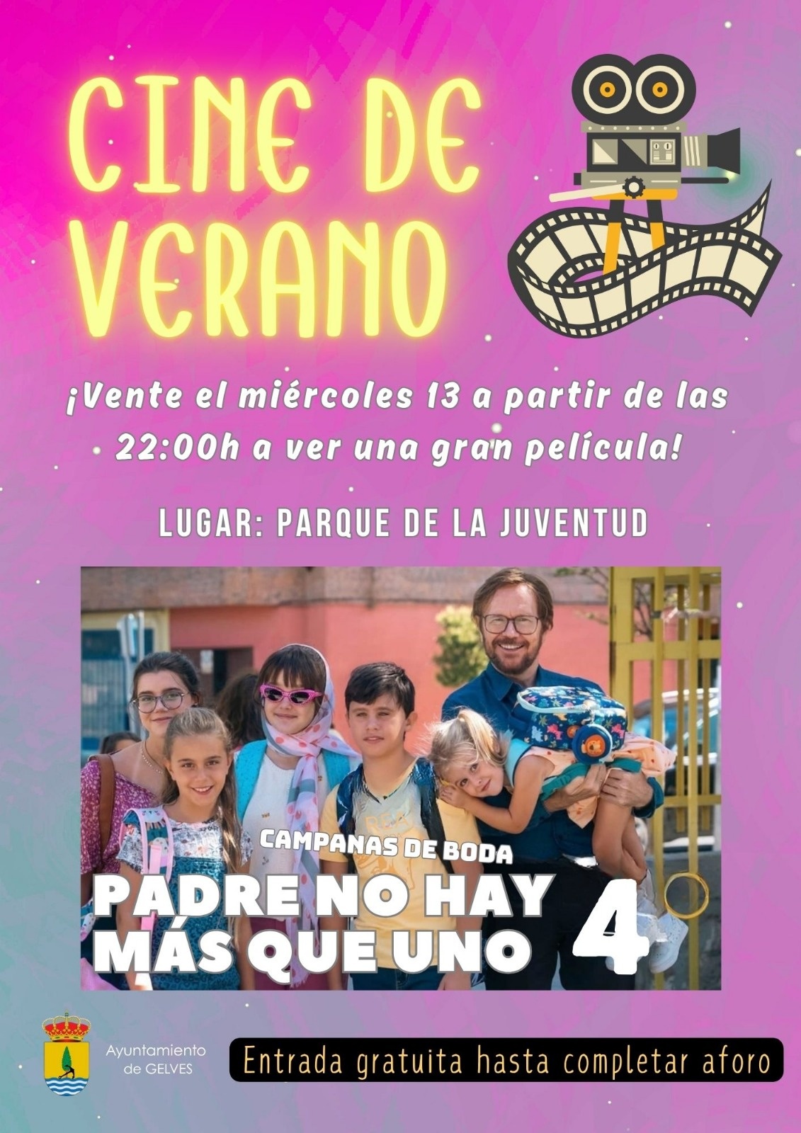 La segunda sesión de Cine de Verano 2025 en el Parque de la Juventud será el 13 de agosto con la proyección de "Padre no hay más que uno, 4, Campañas de Boda",