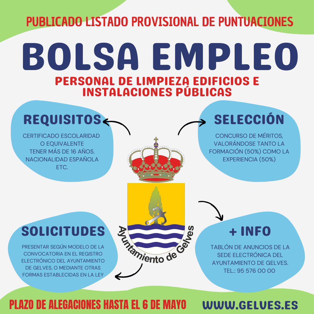 Publicado listado provisional con puntuación de la Bolsa Temporal de Empleo de Personal de Limpieza de Edificios e Instalaciones Públicas