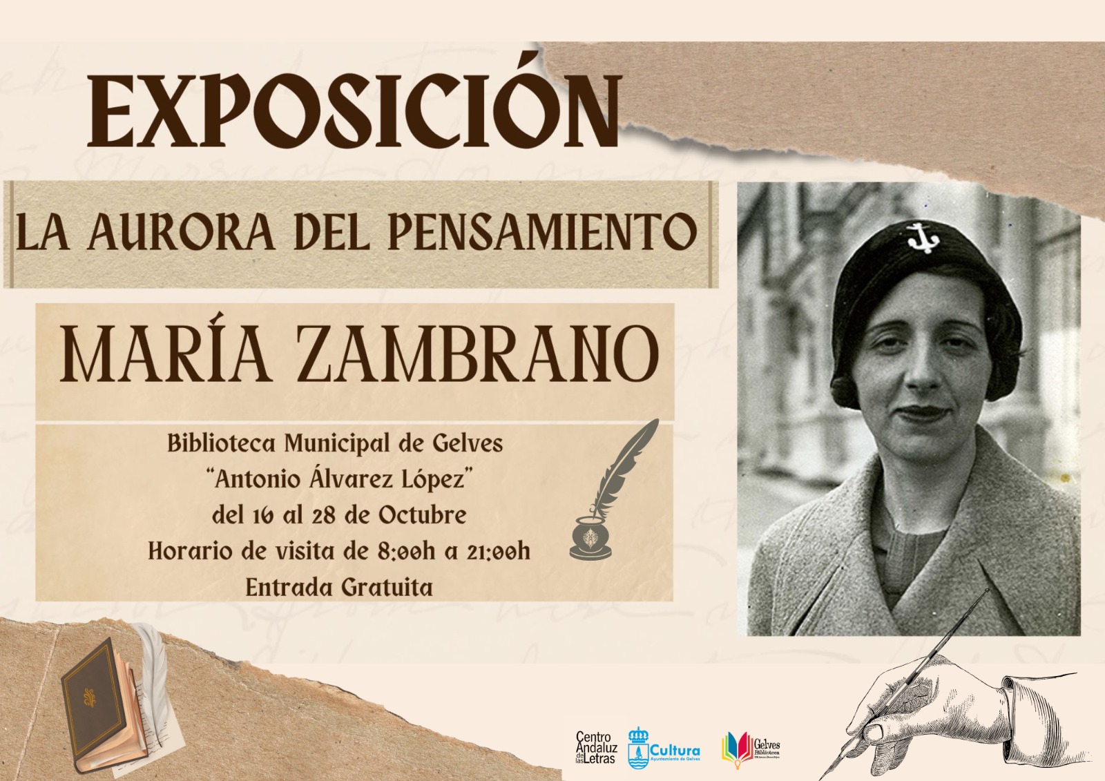 El objetivo es difundir la figura y obra de esta filósofa malagueña y potenciar el patrimonio intelectual andaluz. Se puede visitar hasta el 28 de octubre en horario de 8:00 a 21:00h.
