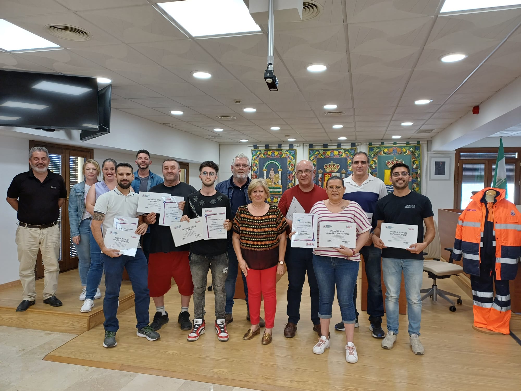 La alcaldesa entrega diplomas acreditativos del curso "Prevención e Intervención en Primeras Emergencias" recibido por el voluntariado de Protección Civil Gelves