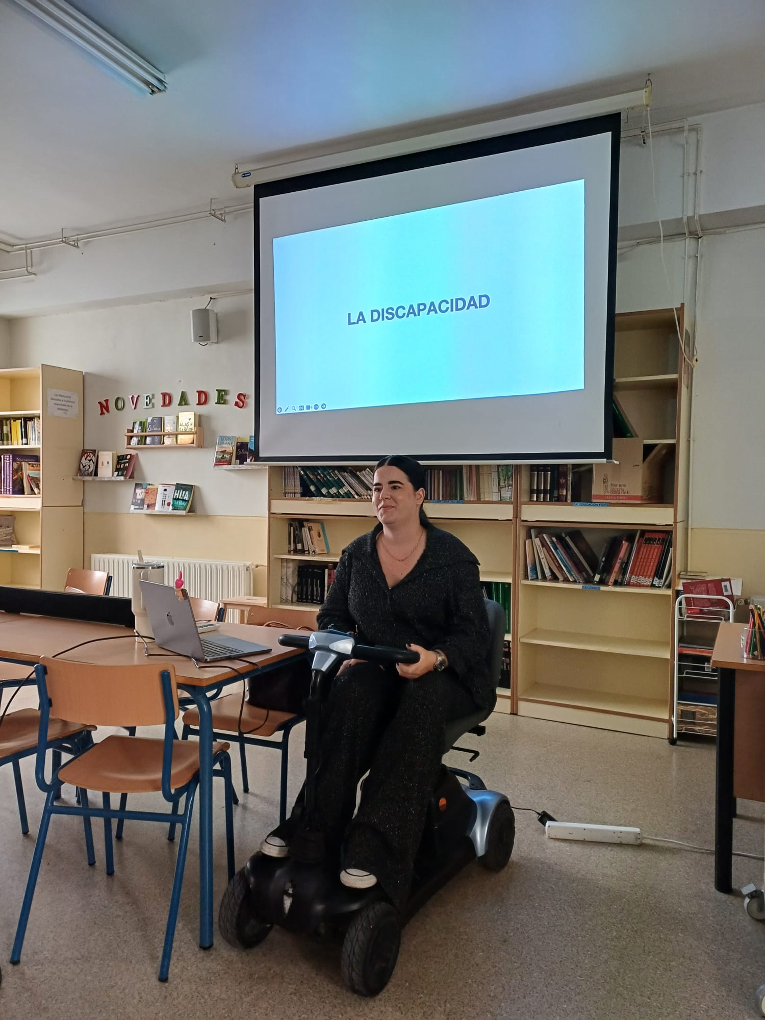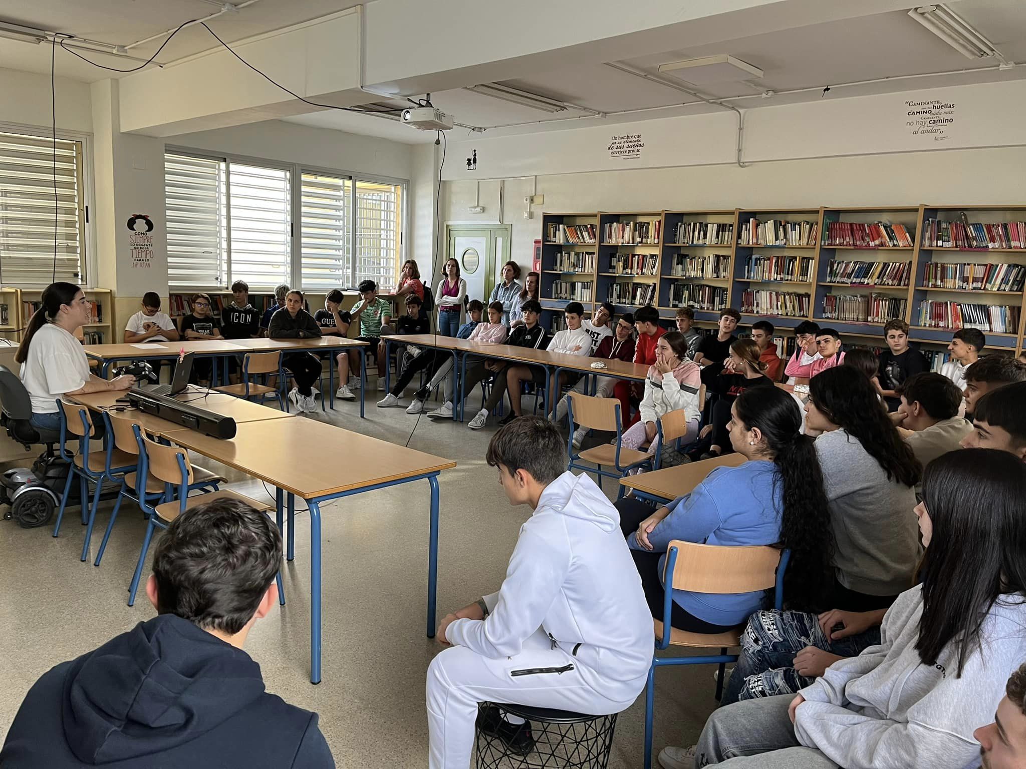 La pasada semana, Anabel ofreció varias charlas en el IES Antonio Álvarez López, donde cursó sus estudios de secundaria, para seguir en esta tarea de concienciación, que próximamente desarrollará también en los centros locales de primaria. En esta ocasión, las charlas dirigidas al alumnado de 1ª de FP Jardinería, 2º y 4º de la ESO, se centraron en “Mitos sobre la Discapacidad” y “El valor de la diferencia”.