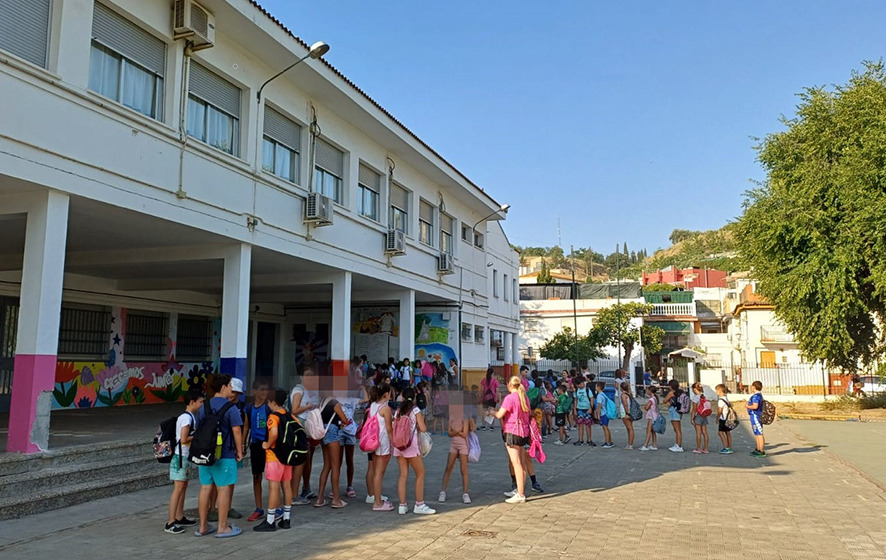 La Escuela Municipal de Verano 2025 que comenzó la temporada el pasado 24 de junio, empieza el mes de julio con más de 150 niños/as inscritos/as, y seguirá ofreciendo este servicio hasta el 5 de septiembre. EL Delegado Municipal de Bienestar Social, Pablo Cordero, y la coordinadora de Servicios Sociales, María Antonia Castro, han visitado esta mañana las instalaciones para conocer insitu al alumnado y equipo de monitores/as de esta temporada. También a la monitora PTIS que el Ayuntamiento ha contratado para cubrir las necesidades de familias del Programa de Atención Familiar de Servicios Sociales y de hijos/as de mujeres atendidas en el CMIM.