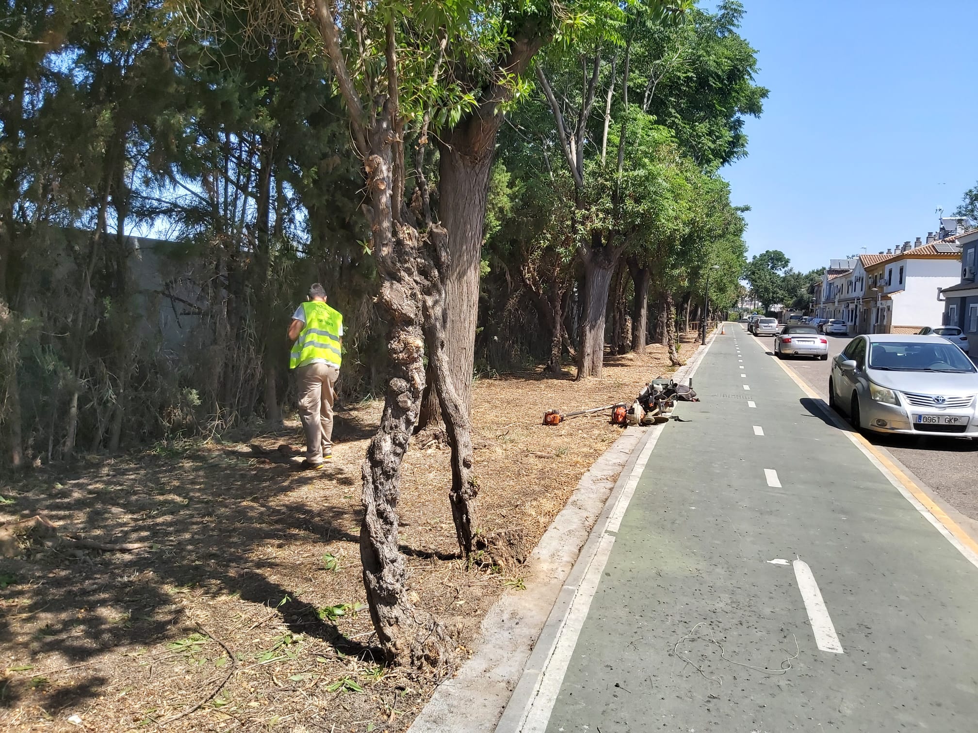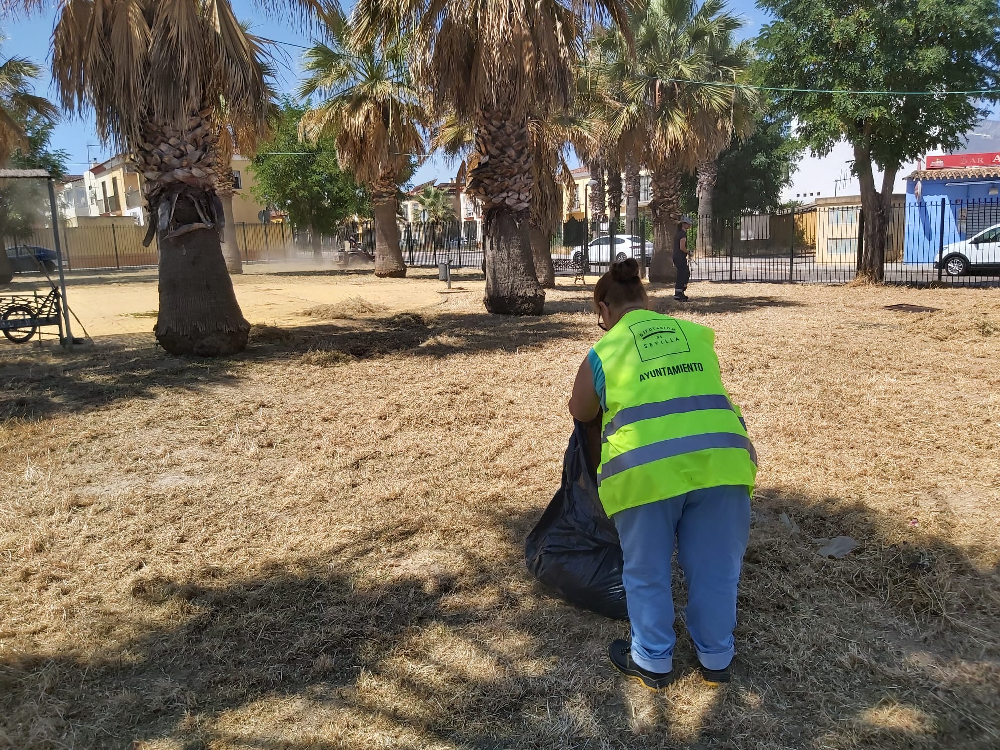 En concreto, las personas beneficiarias que se han incorporado han empezado a realizar tareas de jardinería en el Parque del Agua, situado en calle La Cerca, en previsión de la apertura de la temporada de verano 2024. También han sido destinados/as a la urbanización Marina Gelves, donde están desbrozando las zonas verdes que hay en el trazado del carril bici. Y dentro de la ruta planeada, algunos/as de ellos/as se han desplazado al Polideportivo Municipal, donde junto a los operarios de plantilla de Obras y Servicios Públicos, están limpiando de maleza las instalaciones deportivas.