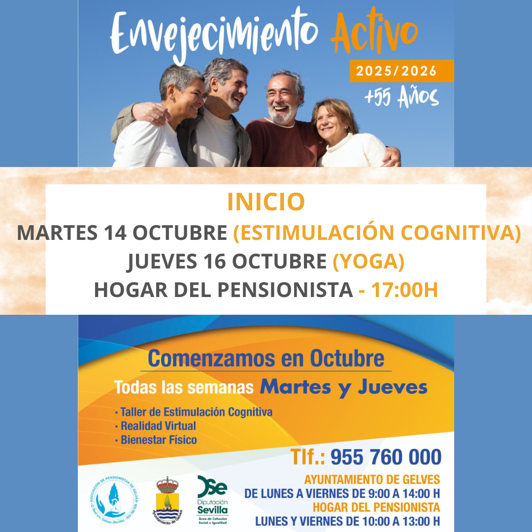 Las primeras sesiones se inician la semana del 13 al 19 de octubre con los talleres de Estimulación Cognitiva (martes) y Bienestar Físico y Mental -YOGA (jueves). Al quedar todavía plazas libres, las personas interesadas pueden realizar sus inscripciones tanto en el Ayuntamiento como en el Hogar del Pensionista.