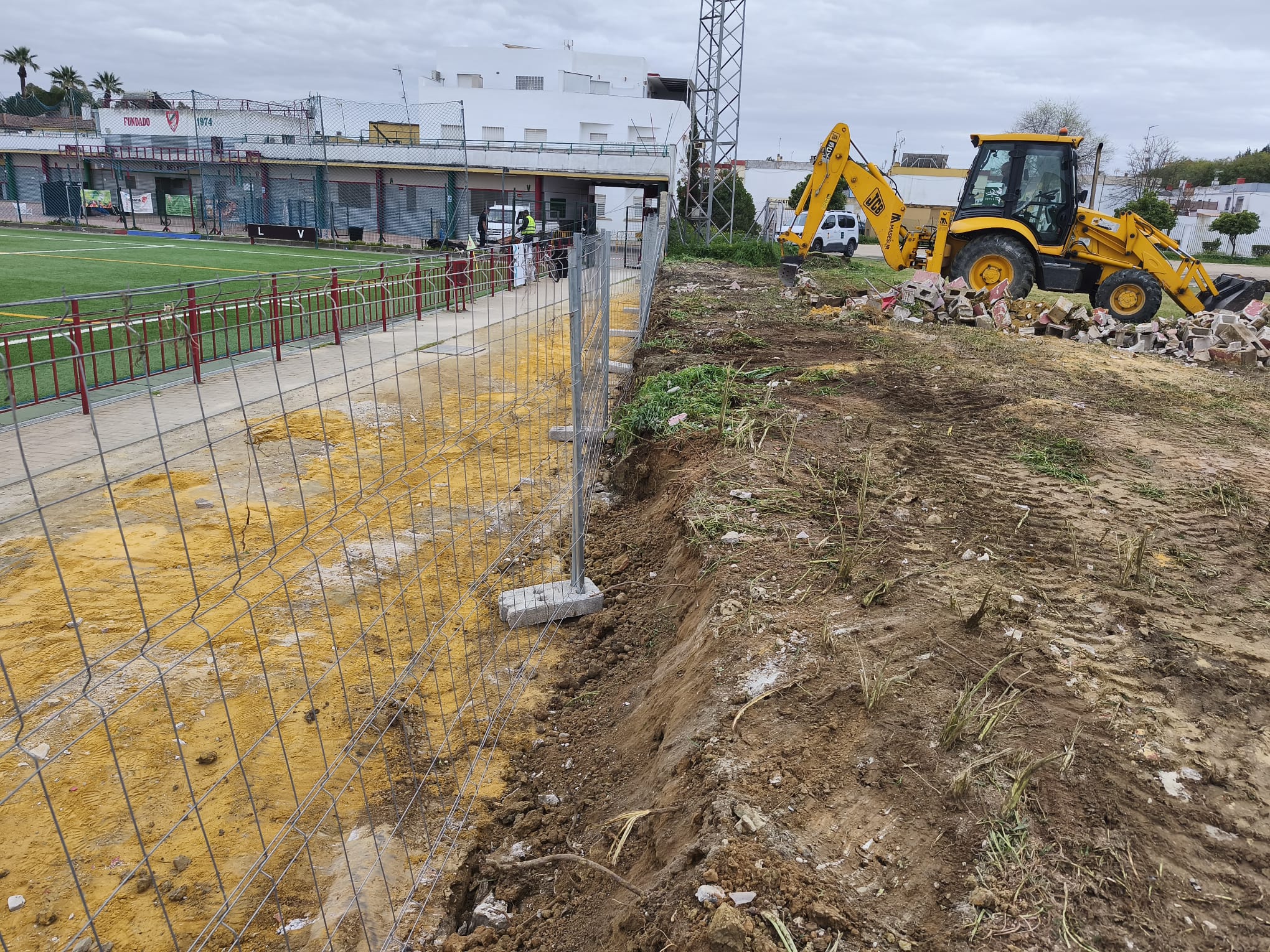 Comienzan los trabajos de demolición del muro del Campo Municipal de Fútbol caído durante los últimos temporales tras la visita ayer del perito de la compañía aseguradora