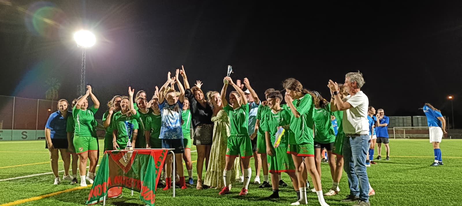 Poco después, a las 21:00h, daba comienzo el primero de los partidos amistosos programados en el Torneo de Fútbol, organizado por el Club Deportivo Gelves, con motivo de nuestras Fiestas Patronales. Un encuentro entre los equipos veteranos femeninos del club local y de la Unión Deportiva Loreto, en el que estas últimas lograron imponerse en la tanda de penaltis, tras un partido muy reñido con empate a tres goles.