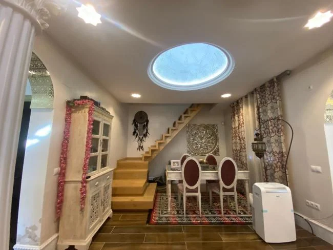 En el interior tenéis un maravilloso patio de cristal que rodea el centro de la villa, decorado con plantas que le harán su estancia muy placentera.