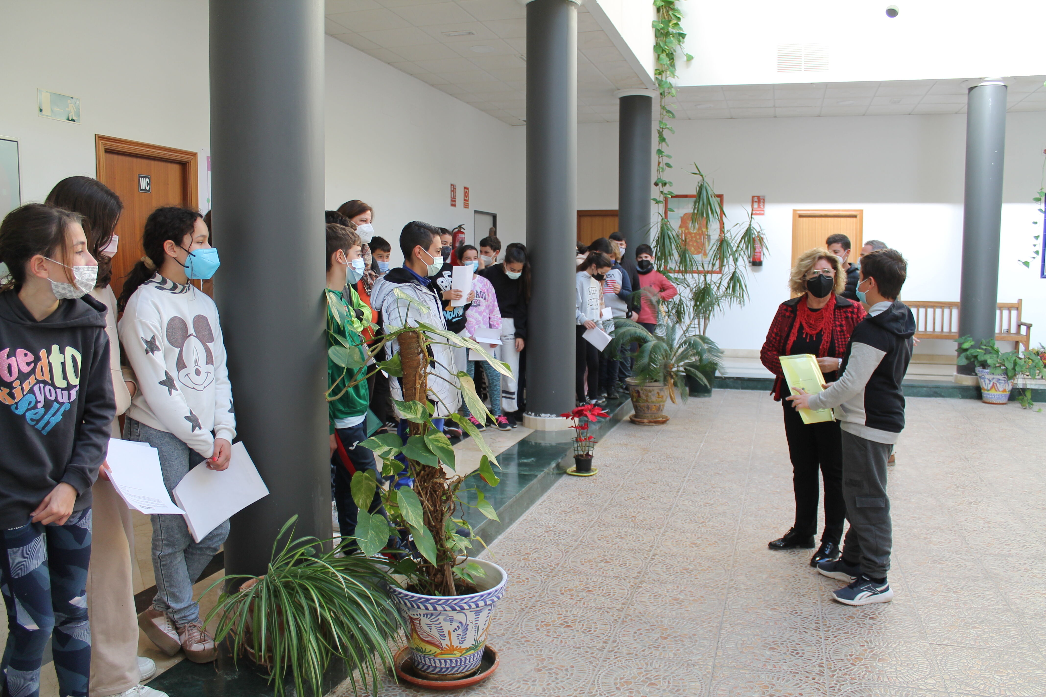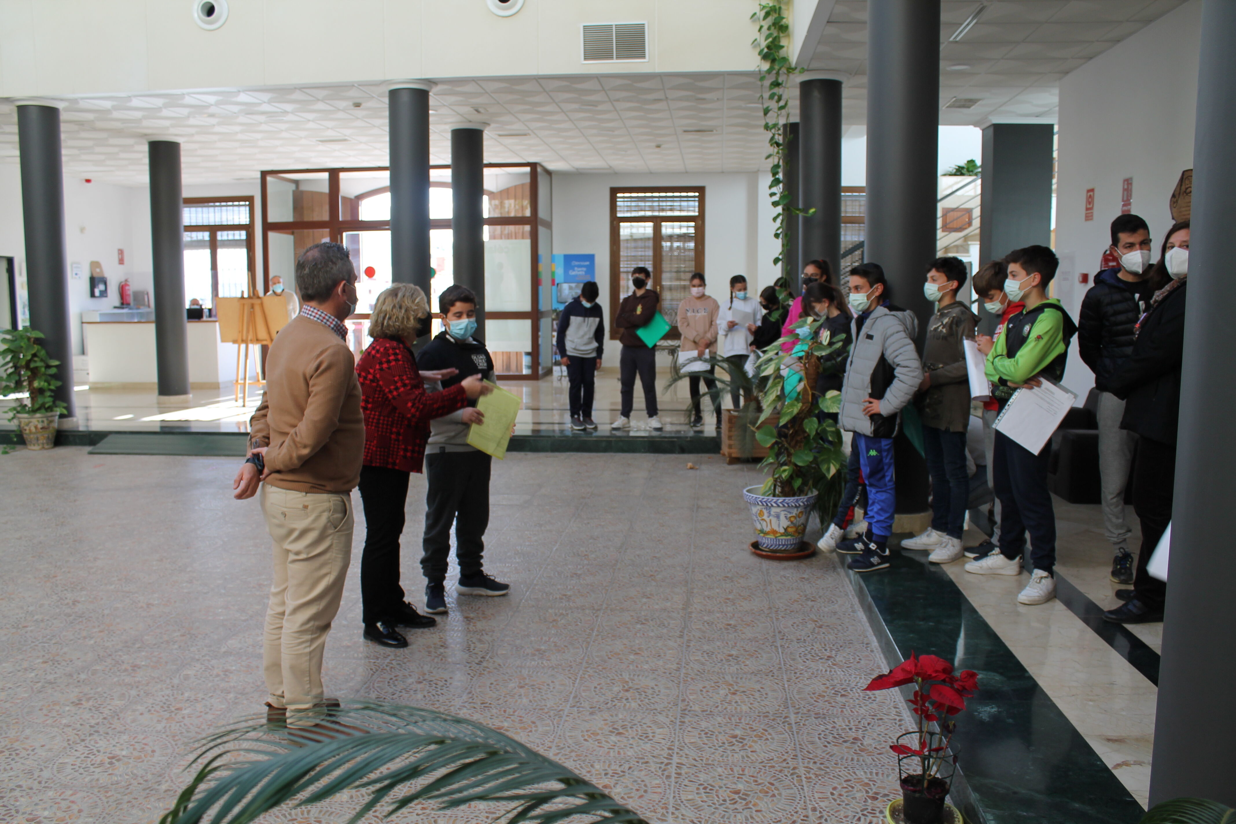 La alcaldesa de Gelves, Isabel Herrera, y el delegado de municipal de Educación, David Mir, han recibido esta mañana en el Ayuntamiento al alumnado de 6º A y 6º C del CEIP Duques de Alba. Un alumnado que les ha trasladado su deseo de contar con un carril-bici en el centro urbano de la localidad, que les permita acudir a su centro educativo de forma más segura y menos contaminante.