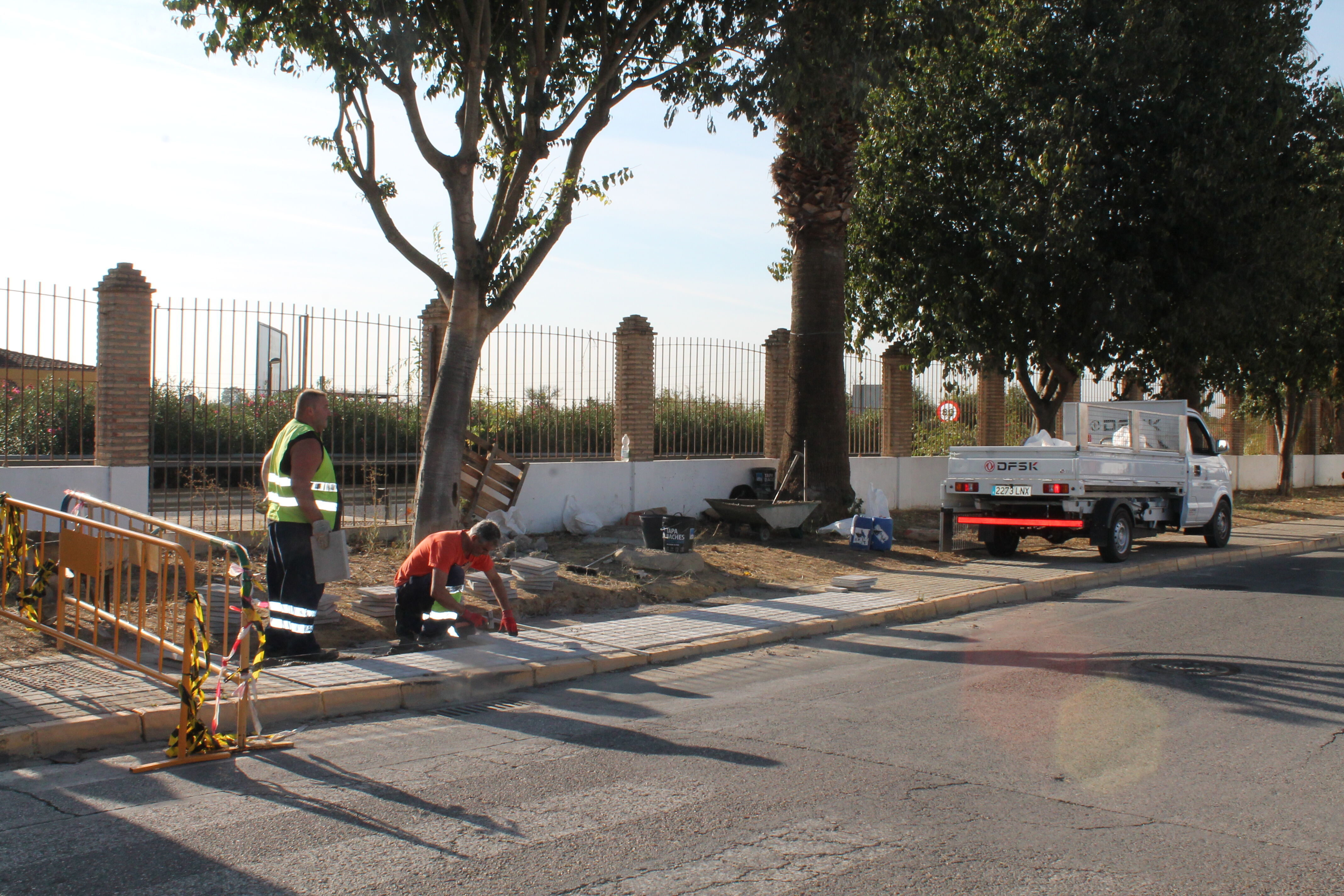 Por otro lado, se continua con el enlosado de acerados que se encuentran en mal estado por toda la localidad. En este caso, se está reparando y reponiendo el ubicado frente al recinto ferial y los locales de la urbanización La Maestranza.