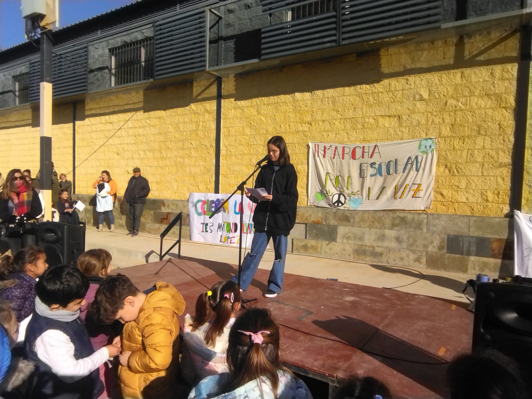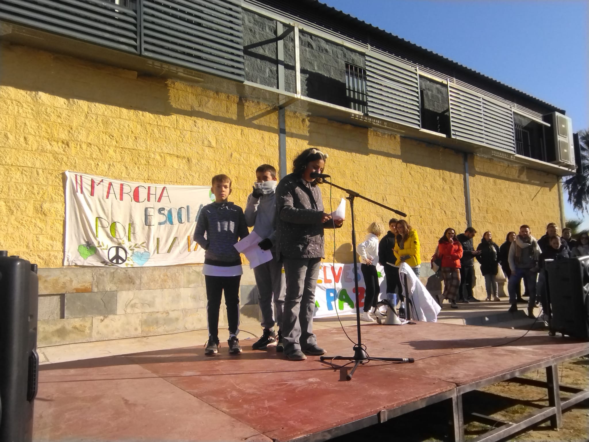 En esta edición ha asistido el alumnado de primero de la ESO, y todo el alumnado de infantil y primaria del municipio. Las intervenciones han corrido a cargo de: ÁNGELA MARTÍNEZ RODRÍGUEZ, MARCOS RODRÍGUEZ ULSE Y MANUEL DÍAZ LÓPEZ (CEIP Dª ROSA FERNÁNDEZ); ANA SEVILLANO LORA (IES GELVES), Gonzalo Mohai Gil, Martín de Oliva Y Óscar Jia Hao Wang (CEIP Duques de alba). Tras las intervenciones del alumnado han coreado una canción titulada CELEBRA LA VIDA, que era el lema de la marcha de este año.