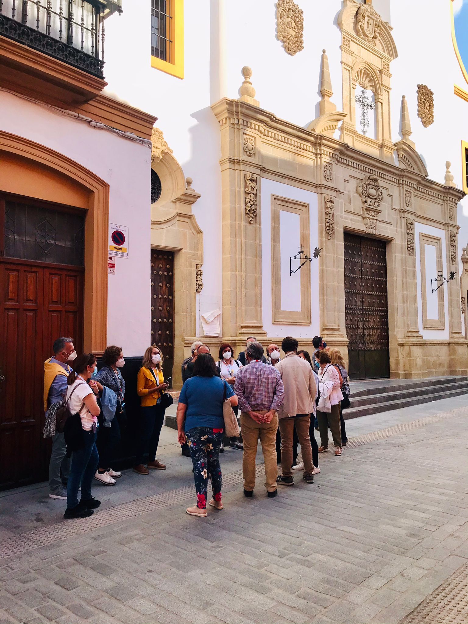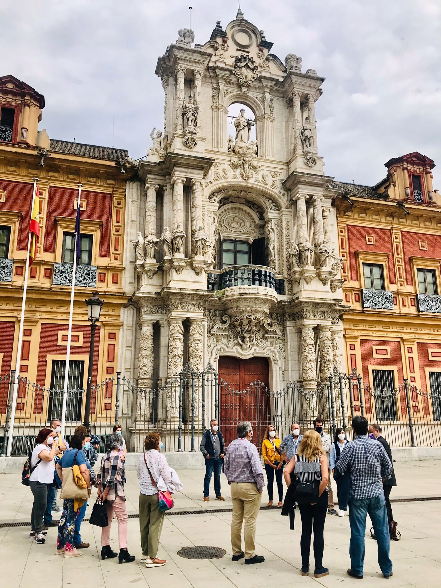 Una vez en Sevilla, la visita tuvo una duración aproximada de tres horas, y durante el recorrido sus 18 participantes, aforo reducido por las restricciones de la pandemia, pudieron conocer parte de los palacios y casas señoriales sevillanas desde el siglo XIV hasta la actualidad. Acompañado/as por un guía turístico experto, la visita se inició en el Palacio de San Telmo, para posteriormente conocer la Casa Guardiola y Palacio Yanduri. Después fueron a la Casa de la Provincia y al Palacio Arzobispal. A continuación pudieron disfrutar de enclaves tan interesantes como Casa Pinello, Casa Salinas y Casa Fabiola. Ya en la Judería vieron el Palacio de Altamira y el Palacio de Miguel Mañara, terminando en la Casa de Pilatos.