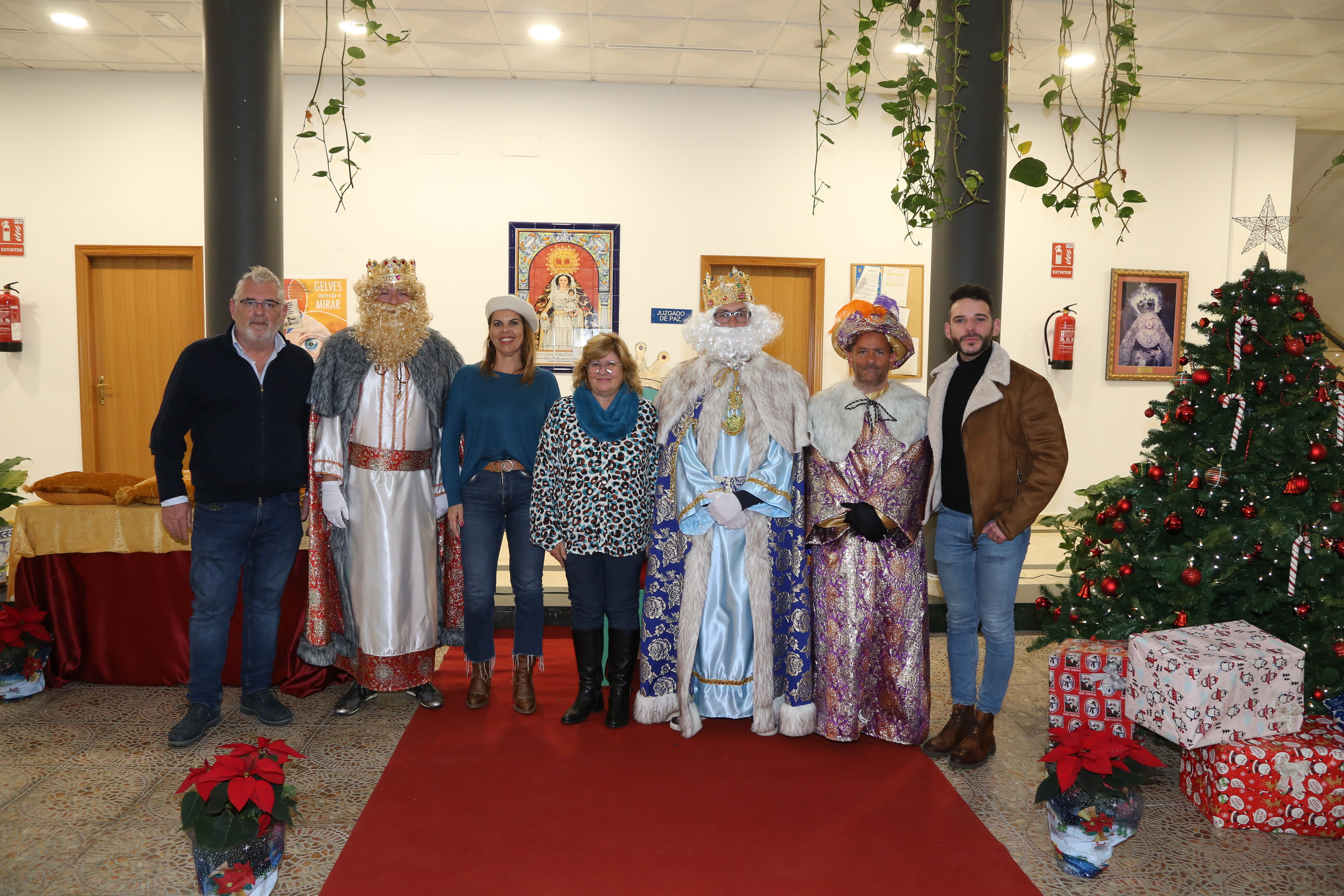 Las personas que encarnarán estas figuras en Gelves la presente Navidad son: Jaime Salinas (representando a Melchor), Tomás Valencia (representando a Gaspar) y Faustino Vela (en representación de Baltasar).