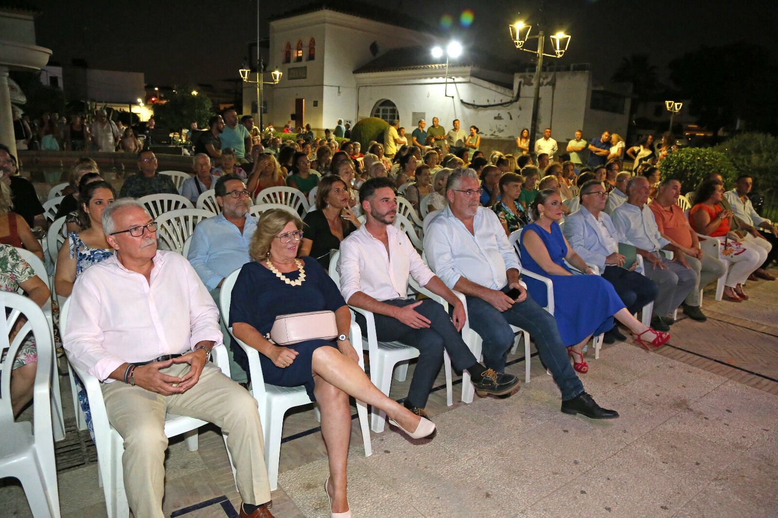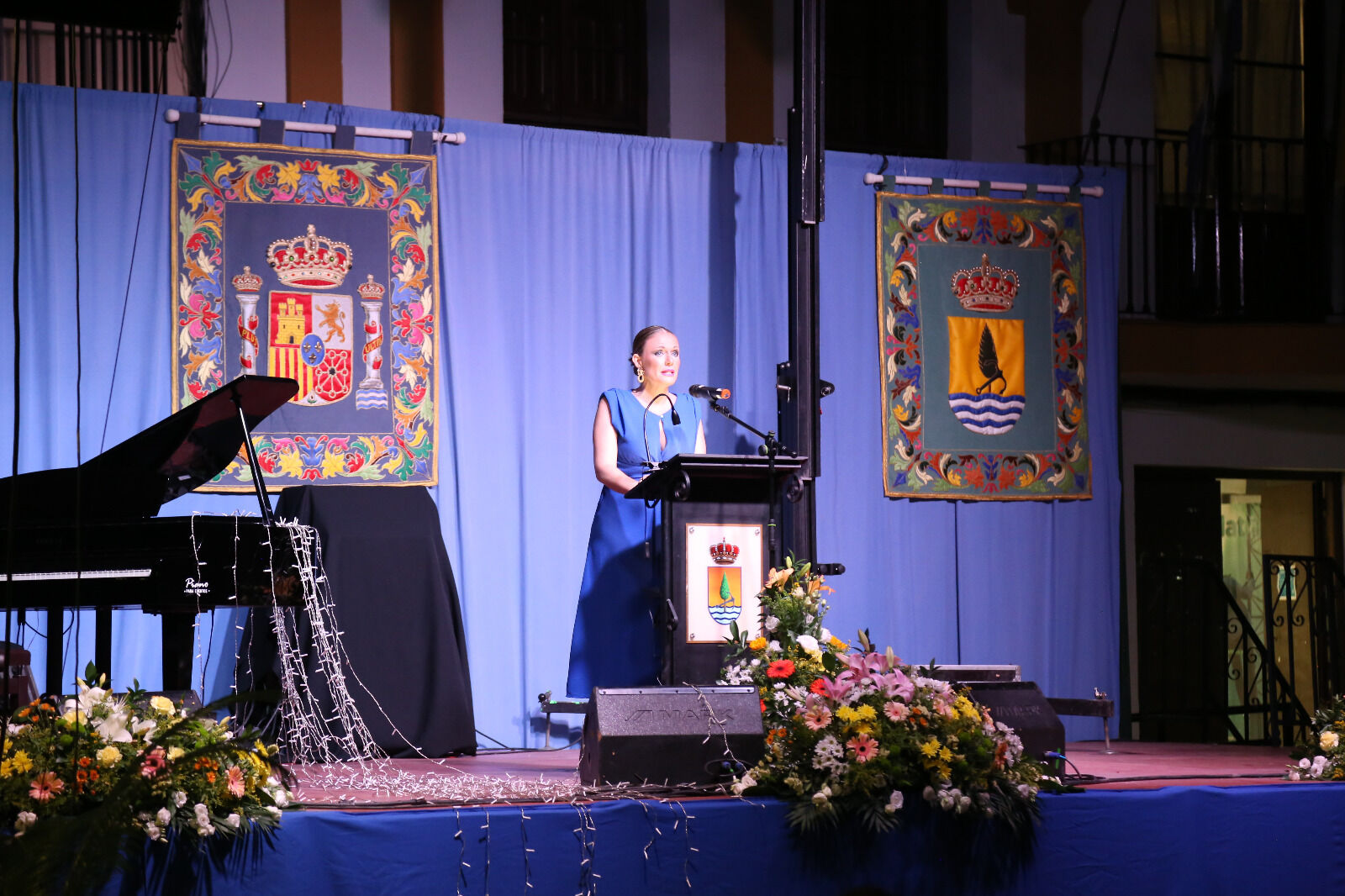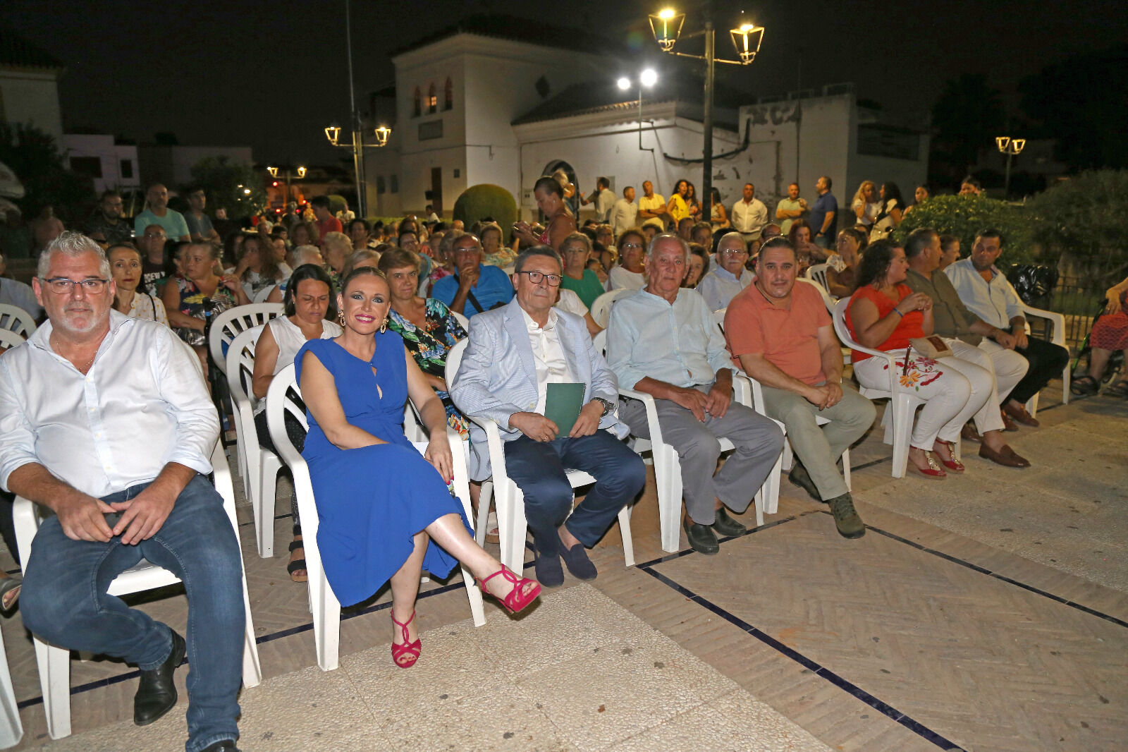 Gelves vivió anoche el primero de los actos con los que comienza el Programa Oficial de Actividades de su Feria y Fiestas Patronales 2022. La protagonista de la velada fue Mariló González González, autora del Pregón de este año, que logró transmitir todas sus vivencias, recuerdos y emociones, contagiando al numeroso público que se congregó en la céntrica plaza Duques de Alba. Carlos Elías Calero, pregonero de la última edición celebrada en 2019, antes del parón de la pandemia, fue el encargado de presentarla, compartiendo con el público asistente detalles de una mujer joven y muy enamorada de su pueblo: miembro del coro de la hermandad de la Patrona, Nuestra Señora de Gracia, desde los 14 años, actualmente secretaria de su Junta de Gobierno, y muy implicada con todo lo que tiene que ver con Gelves. La pregonera estuvo acompañada musicalmente por un grupo de amigos/as que comparten con ella caminos de Rocio y el amor a la virgen de Gracia, junto con su hija Lucía que la acompañó en todo momento a la guitarra.