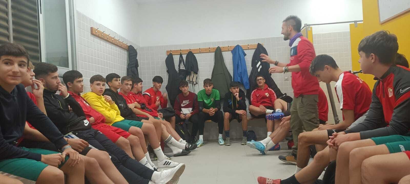 Esta semana ha concluido la primera fase del proyecto “Charlas de Vestuario” desarrollado en colaboración con el Club Deportivo Gelves desde el pasado mes de diciembre, con el objetivo de construir entornos igualitarios y libres de violencia desde el fútbol base. David Cerón Vázquez, responsable del área de coeducación de la Fundación Iniciativa Social y coordinador del proyecto en colaboración con la Delegación de Igualdad del Ayuntamiento de Gelves, ha sido la persona encargada de dirigir las distintas sesiones en el mencionado club, adaptándose en todo momento a los calendarios y necesidades de los distintos grupos con los que se ha trabajado.