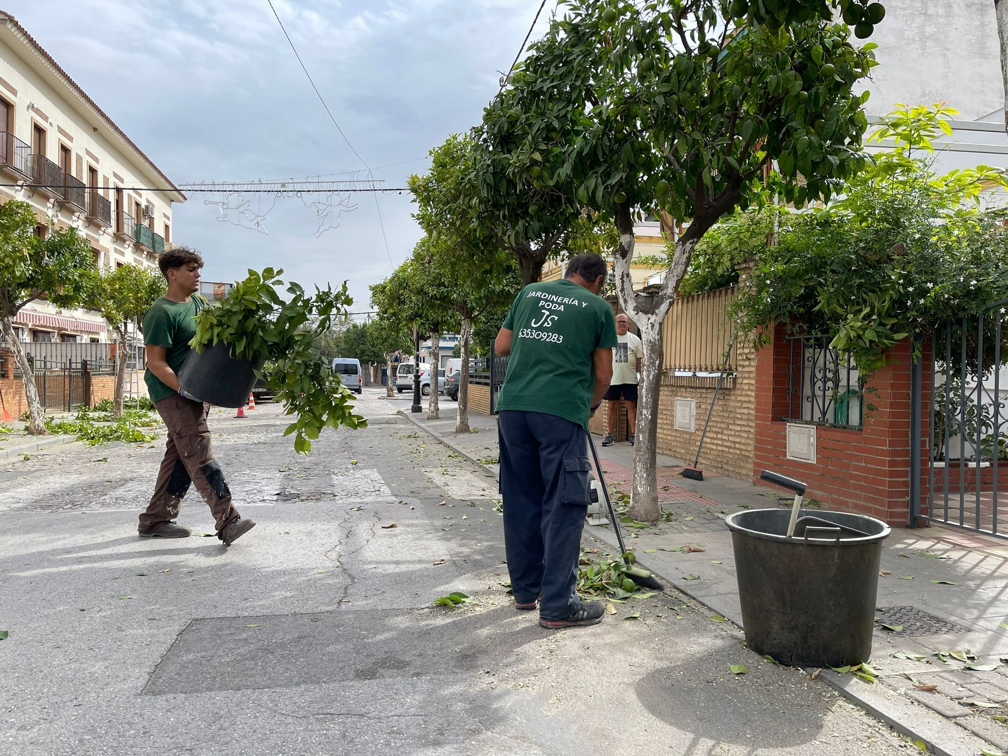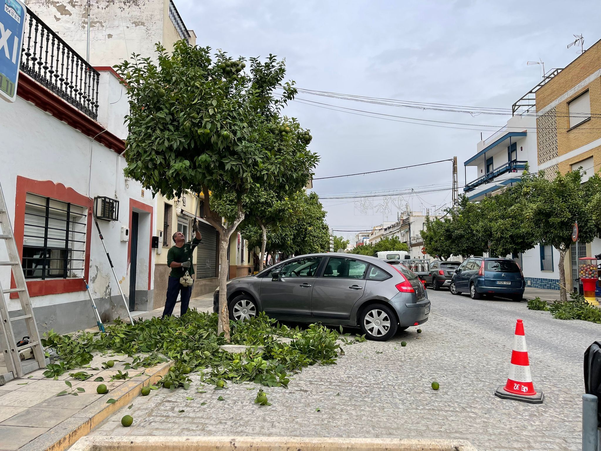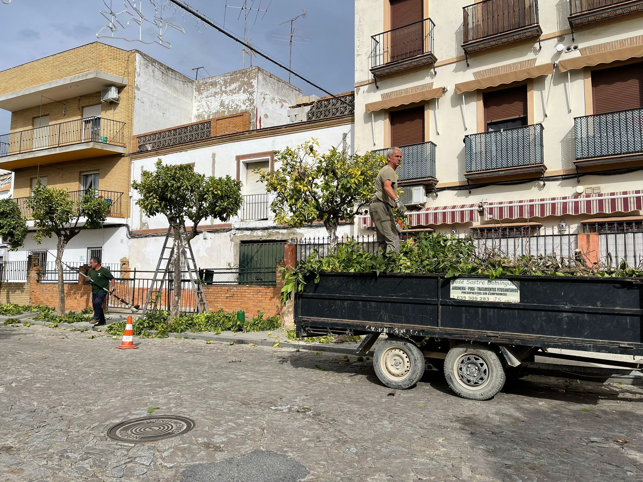 La Delegación de Servicios Públicos del Ayuntamiento de Gelves continúa con la campaña de poda de naranjos y otras especies arbóreas repartidas por todo el término municipal. Como refuerzo al personal municipal, insuficiente para poder realizar este tipo de trabajos en las épocas adecuadas, se ha contratado a una empresa local, José Sastre Domínguez, que ha comenzado por los naranjos existentes en la urbanización “La Maestranza” para continuar por las calles Real y Matías Vela, Plaza Almería, urbanización Amaranta II y barriadas de Gracia y Andalucía.