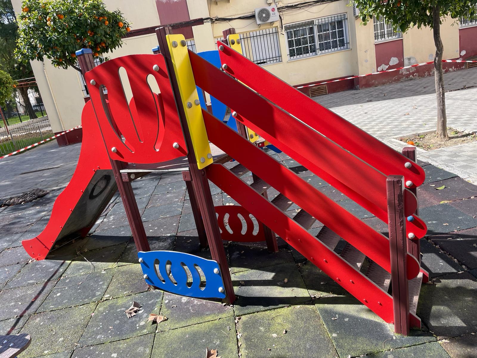 También se han puesto a punto de carpintería, herrería y pintura los instalados en la barriada de Andalucía y Jardines del Guadalquivir, a los que seguirán próximamente plaza Duque de Alba (ya iniciado), Recreo de la Condesa y parques de la zona de Simón Verde.