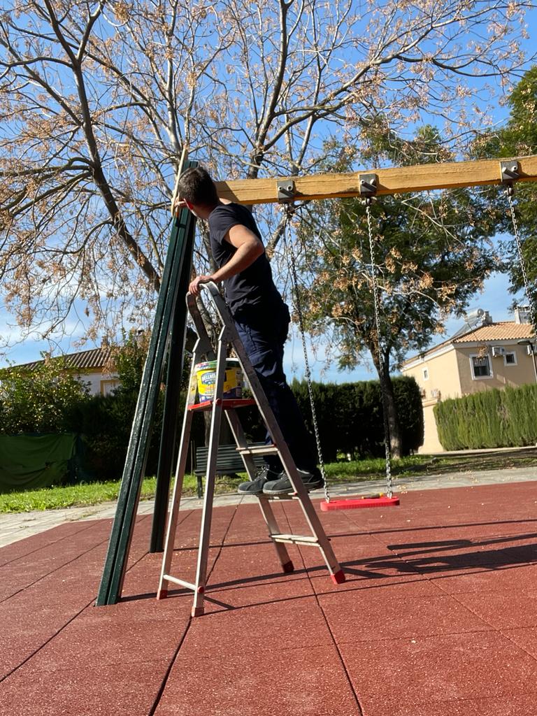 La Delegación de Obras y Servicios del Ayuntamiento de Gelves continúa su hoja de ruta para poner a punto los parques infantiles existentes en la localidad. A los de más reciente instalación situados en el Parque de Los Manantiales, Puerto Gelves, Los Naranjos y calle Borosa, se han unido últimamente la reparación de estructura y pintura de los mobiliarios o juegos infantiles ubicados en el parque de la urbanización Marina Gelves, donde también se han arreglado las máquinas destinadas a actividad física para personas adultas ubicadas en la zona sur de la misma.