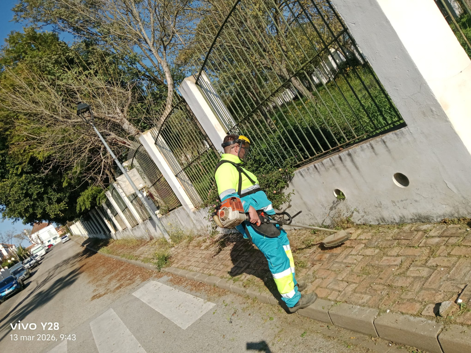 Por parte de la empresa contratada por el consistorio para la limpieza viaria también se siguen desbrozando aceras, alcorques y plazas, entre ellas las ubicadas en los edificios de viviendas en altura del sector 2 (zona del SAMU), la zona de aparcamientos del Aldi (Urbanización Hacienda Simón Verde) y algunas calles de Simón Verde (Viar, Fresneda y Guadalquivir).