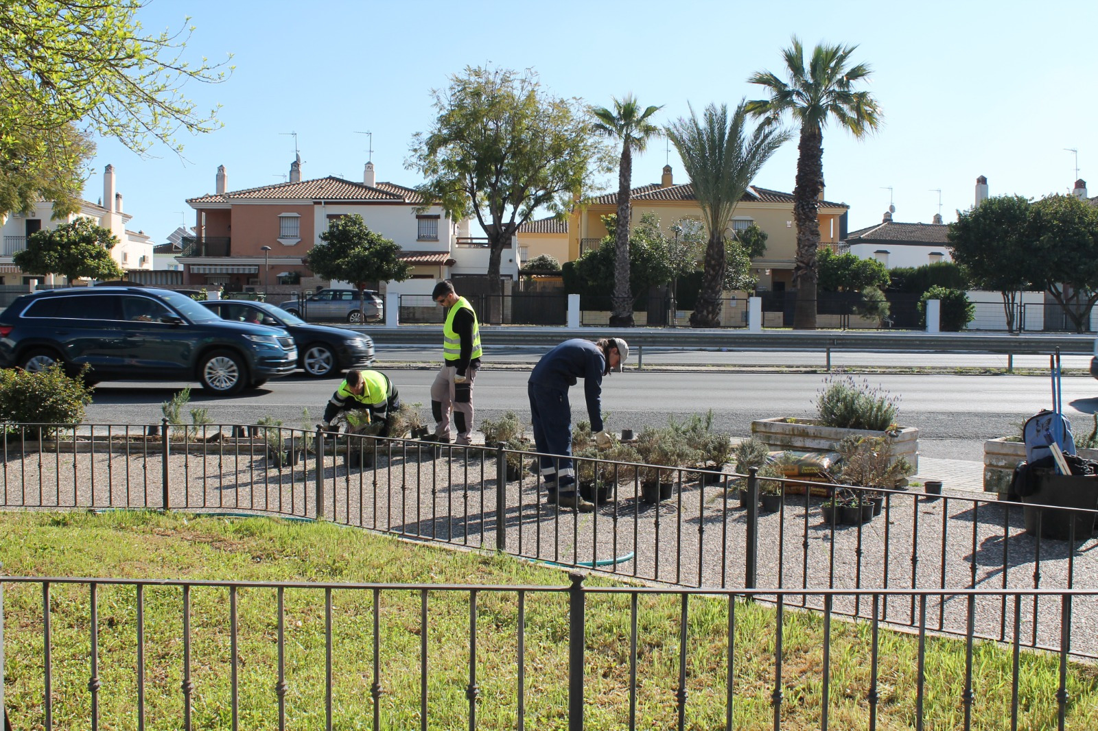 En cuanto a la siembra de nuevos ejemplares de árboles y plantas, han sido 38 naranjos de gran porte en Simón Verde, concretamente en la calle Acebuche, y decenas de plantas aromáticas tanto en la plaza Duque de Alba como en la zona comercial de la barriada Andalucía.