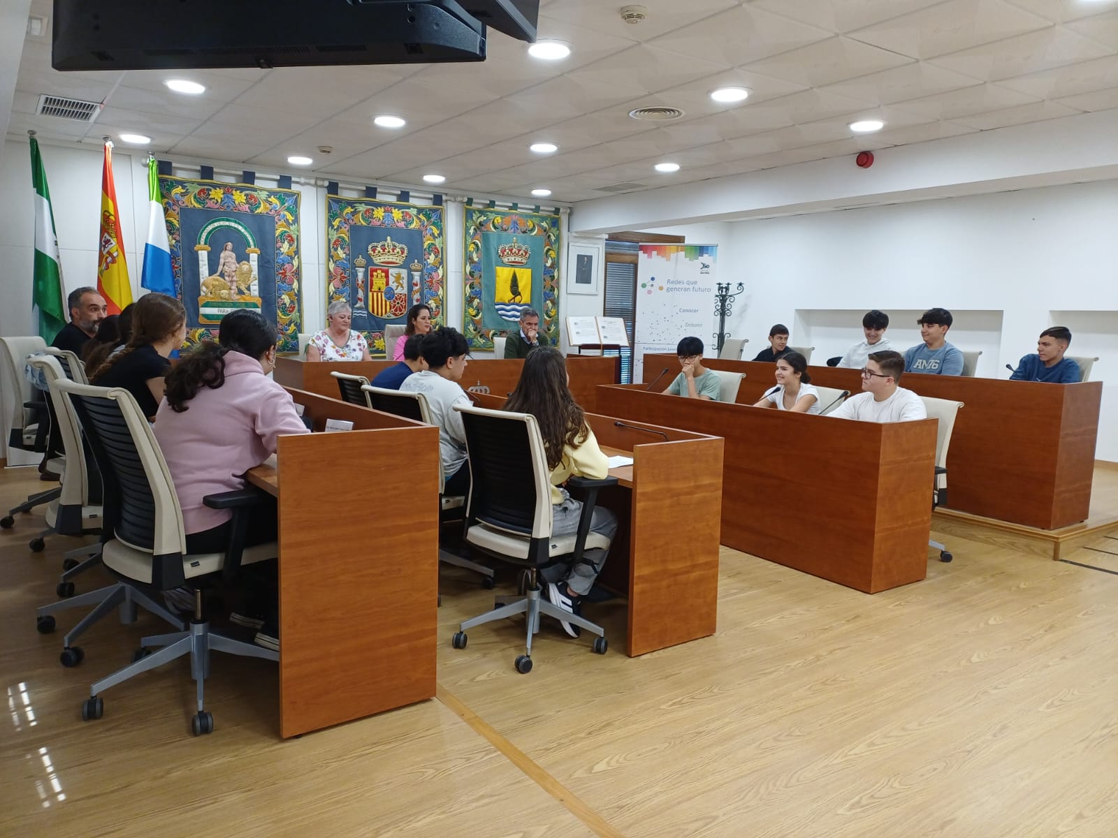 El salón de plenos del Ayuntamiento de Gelves acogió ayer una sesión muy especial en la que alumnado del IES Antonio Álvarez López, participante en el programa municipal “Redes que Generan Futuro”, presentaron diversas propuestas de mejora para la localidad.