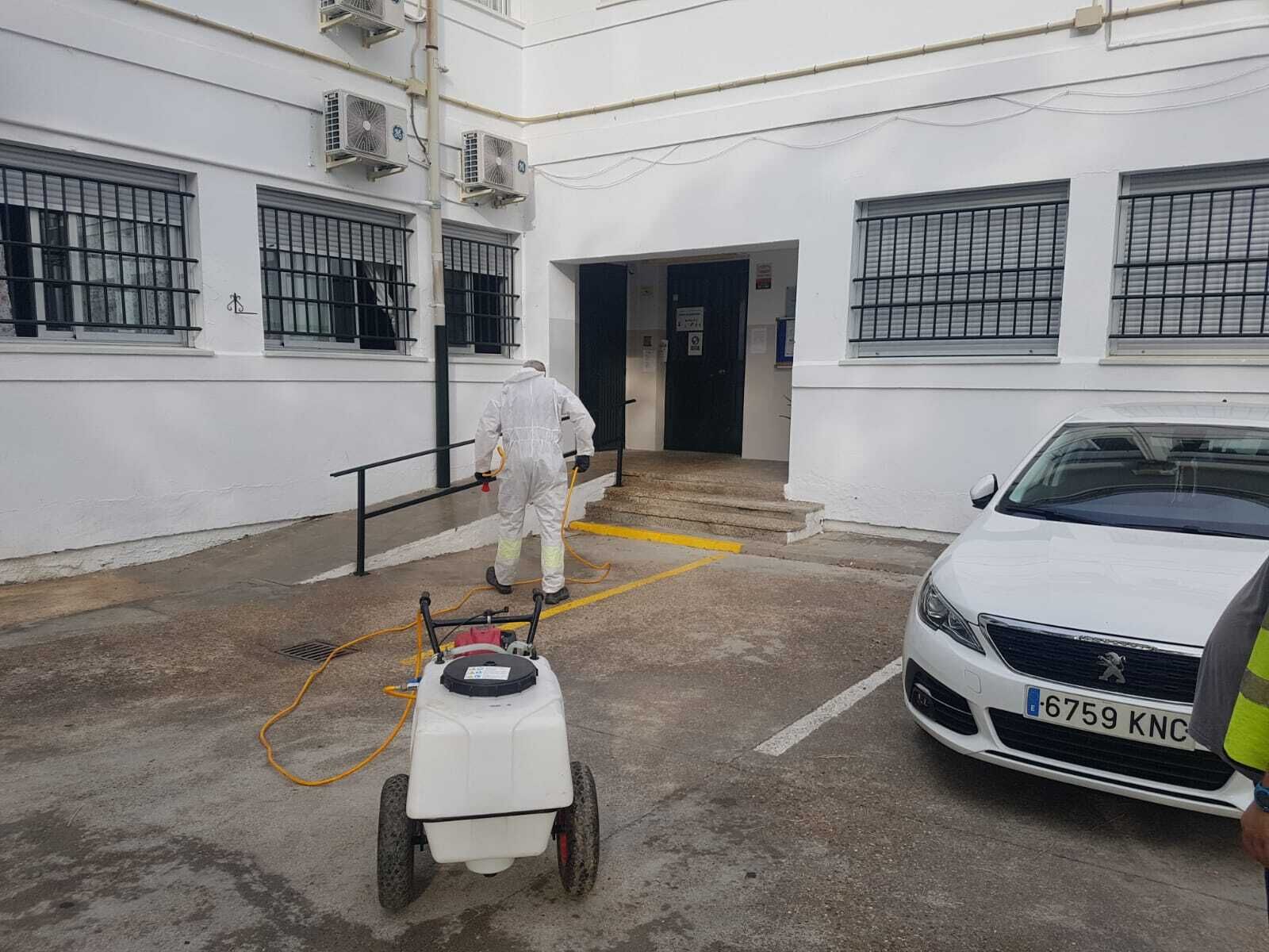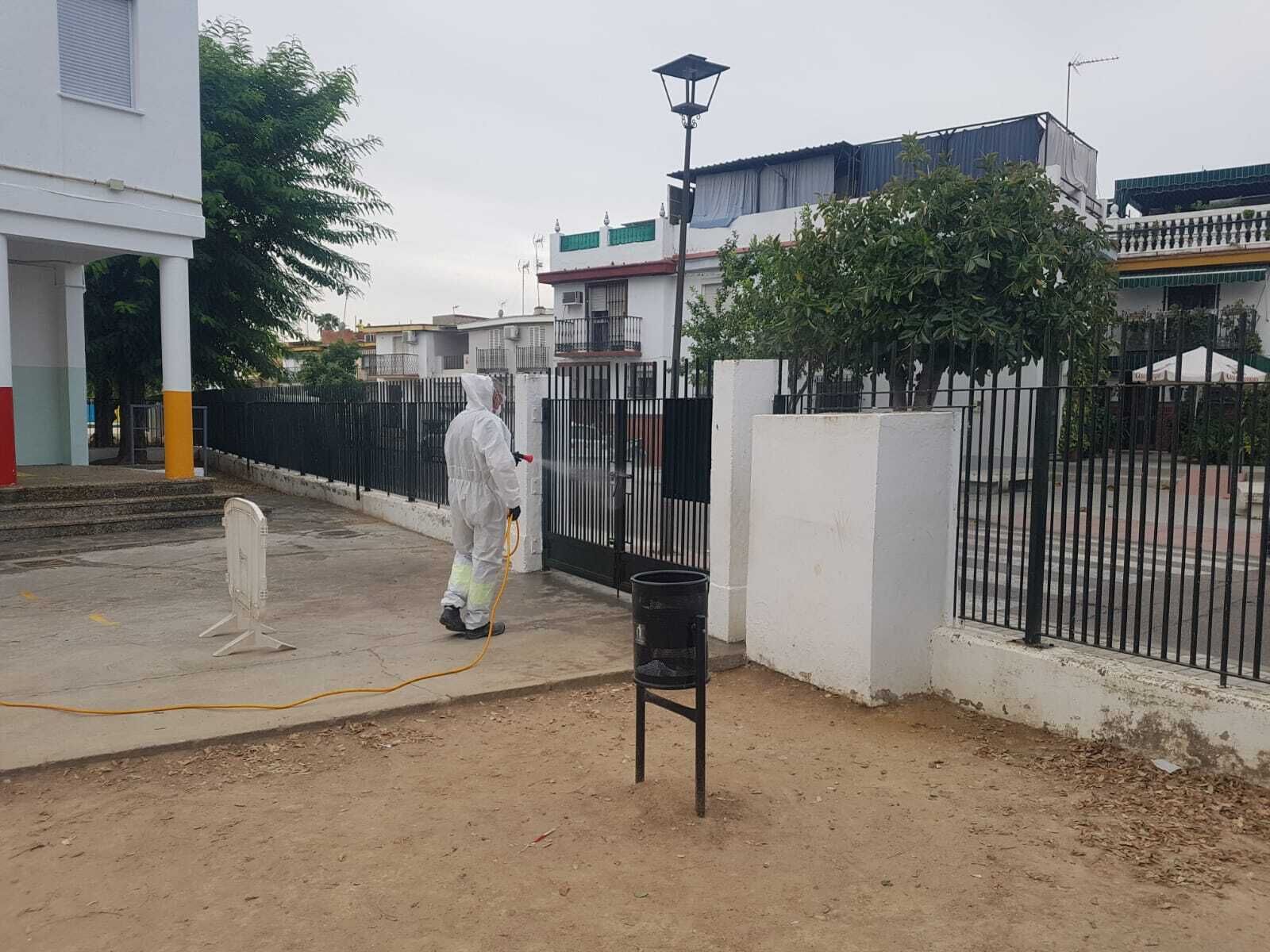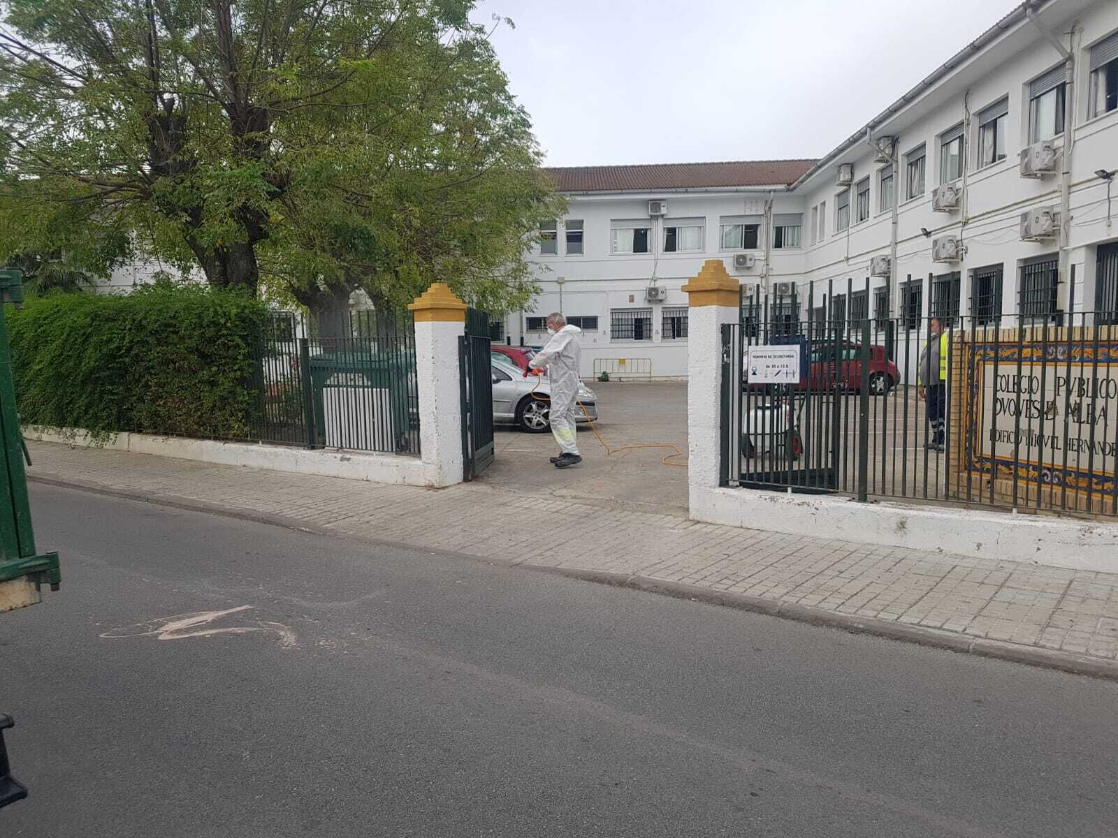 El Ayuntamiento de Gelves ha intensificado las labores de desinfección que viene realizando diariamente en el CEIP Duques de Alba, desde que ayer se confirmaran varios casos de contagio de Covid-19 entre su plantilla de profesores/as. Si en la jornada de ayer estos trabajos se centraron en los espacios de mayor riesgo y en las clases donde estos profesores/as daban sus materias, esta mañana han continuado por otras zonas comunes, entradas, porches, zona de aparcamientos, patios, etc.