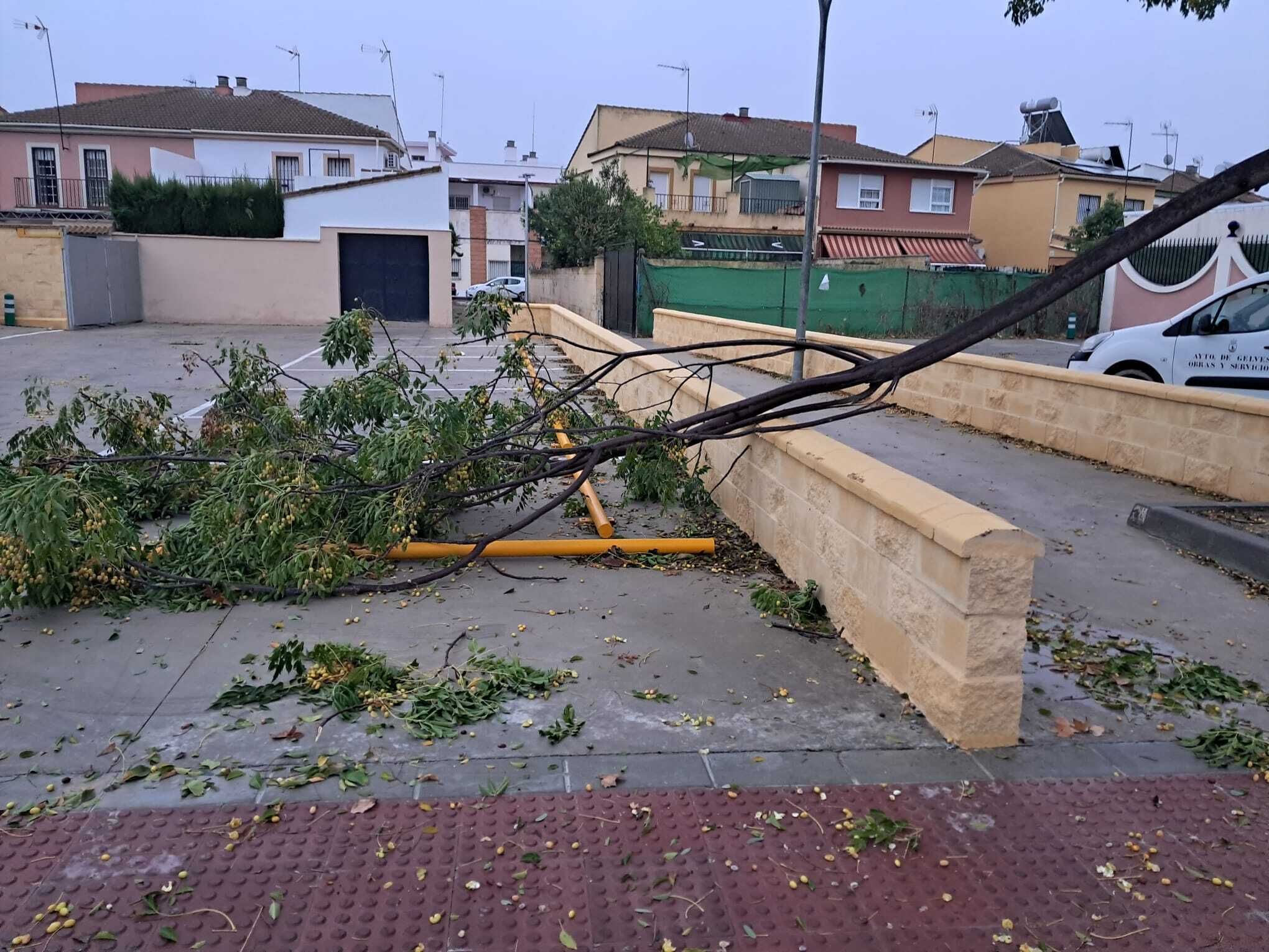 Además de cerrar al público parques y otras instalaciones municipales, tanto los operarios como los agentes de Policía Local estuvieron ayer señalizando los puntos de peligro y atendiendo las situaciones priorizando las urgencias. Entre estos puntos se encuentran la caída de árboles en la barriada Andalucía, urbanización Soto Alto, Marina Gelves, calle Acebuche y calle Jándula.