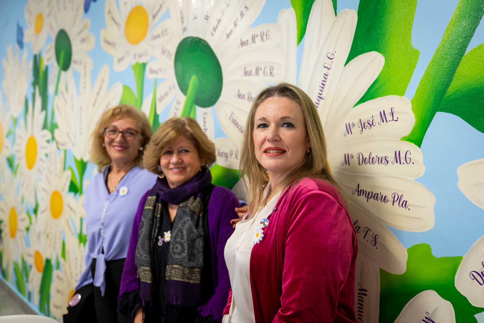 Justo antes de dar comienzo al acto Institucional, la Asociación de Mujeres Fibrogelduba presentaba su nuevo mural, realizado con la colaboración del artista local, Manuel Domínguez, y ubicado en una de las paredes del centro. Tras unas palabras por parte de la secretaria de la asociación, Carmen Sevillano, su junta dio paso a la alcaldesa y la presidenta de la citada asociación para descubrir el mural, teniendo una gran acogida por las personas asistentes debido a su significado, belleza y colorido.